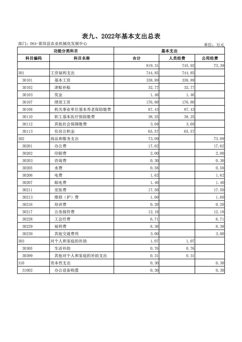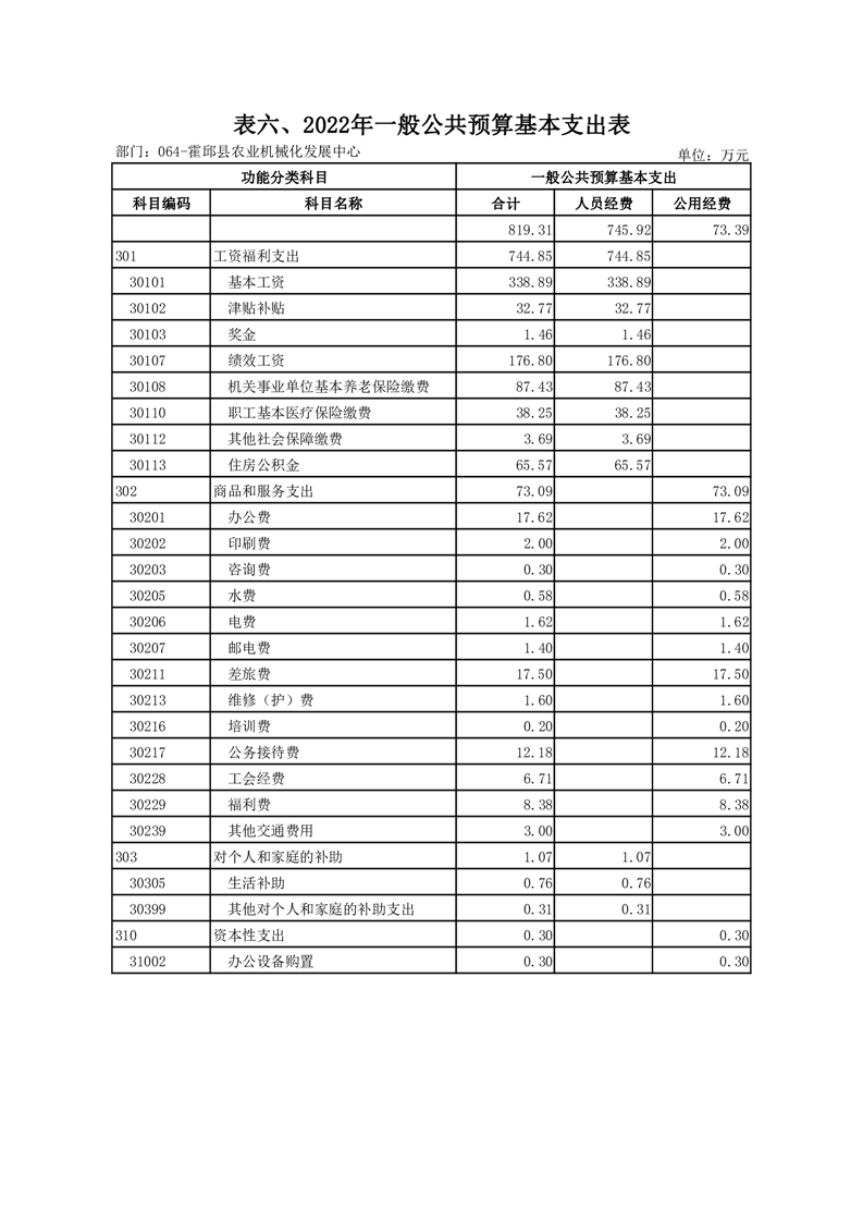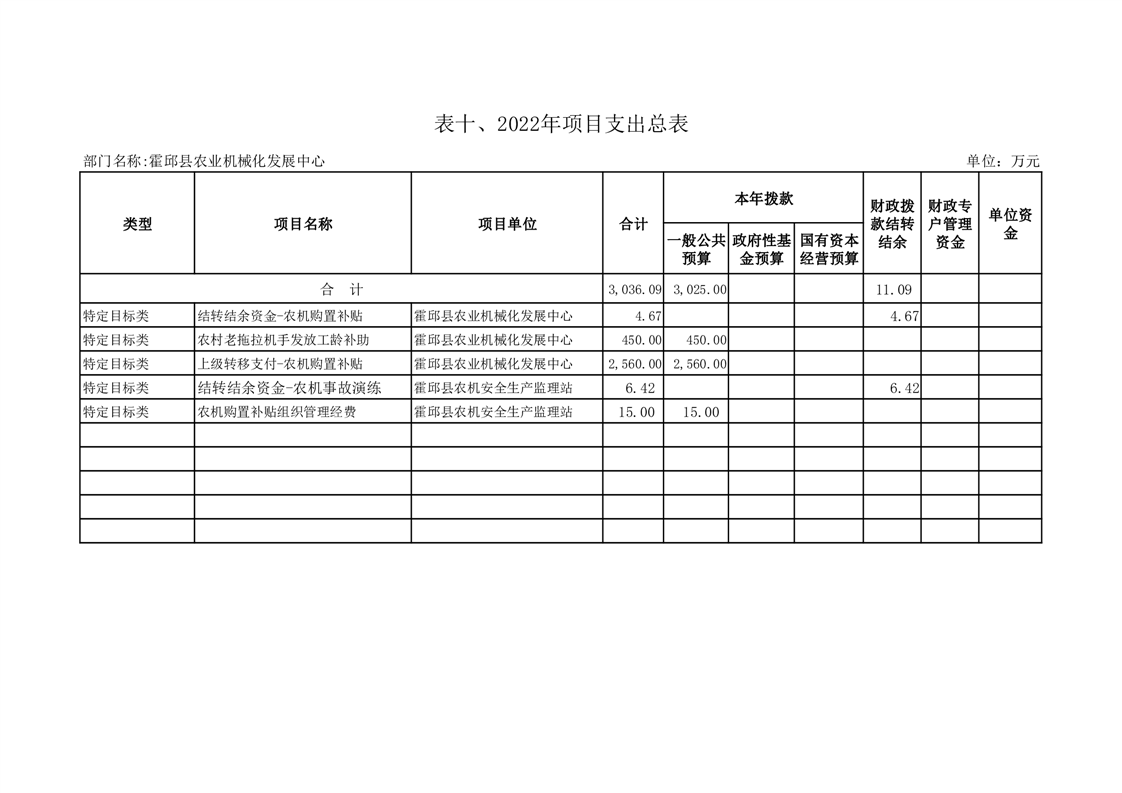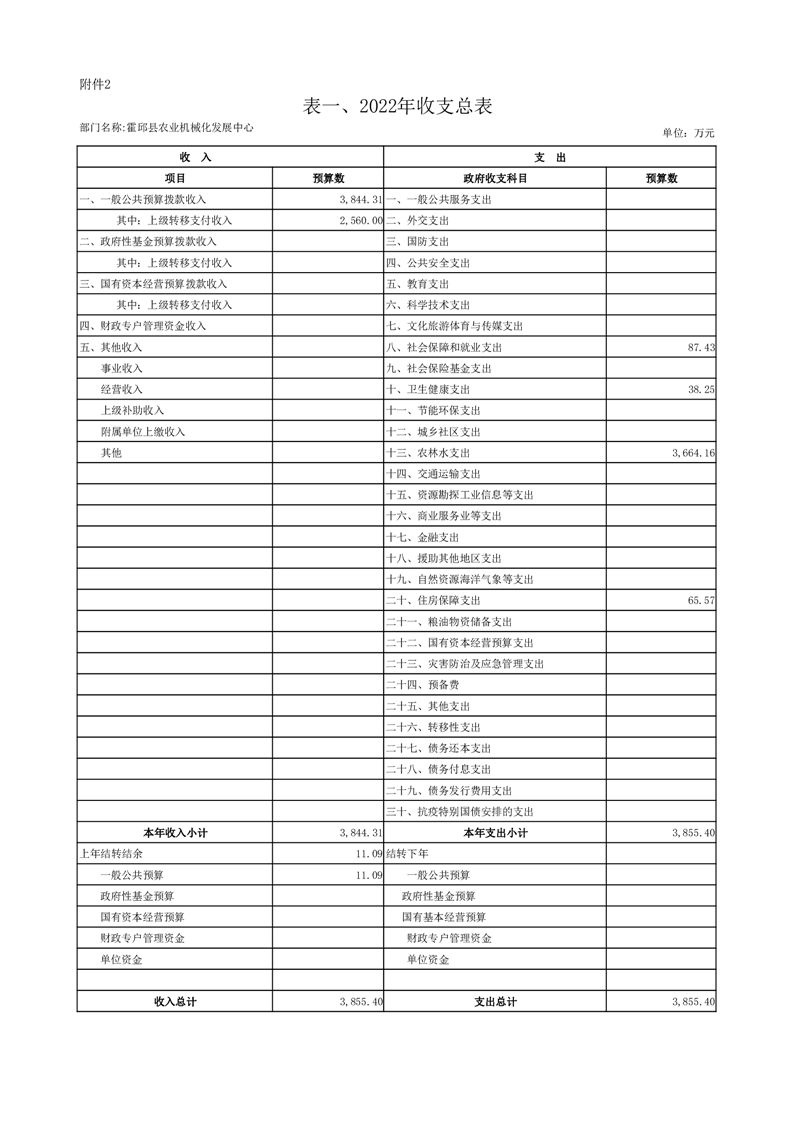 霍邱县农业机械化发展中心2022年单位预算公开(部门)
