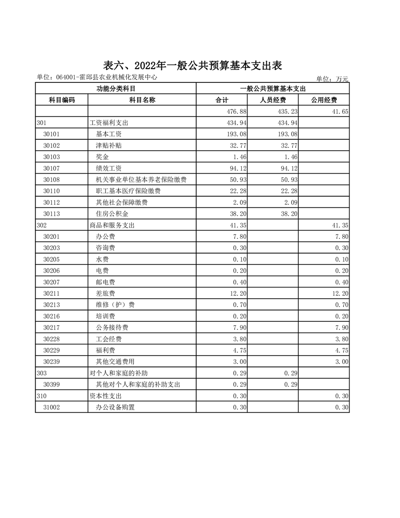 霍邱县农业机械化发展中心2022年单位预算公开(本级)