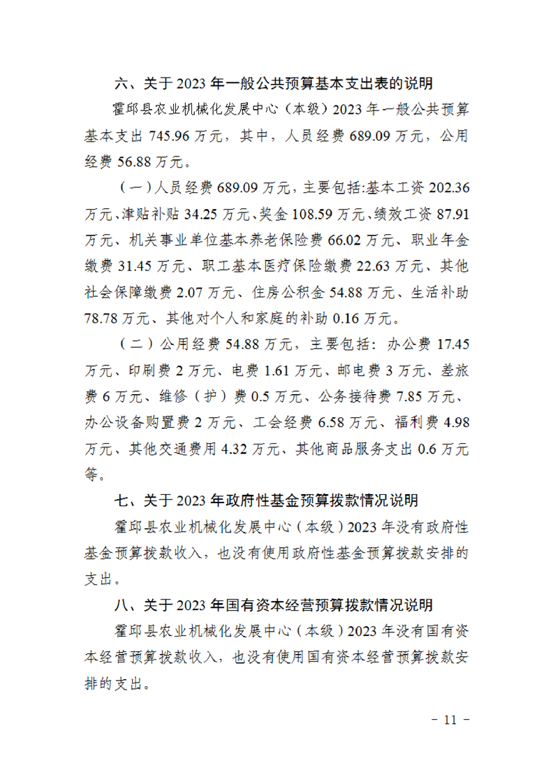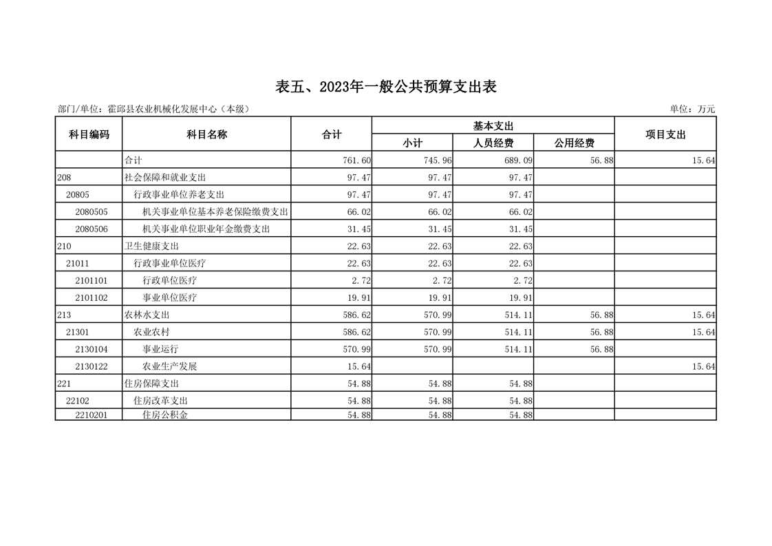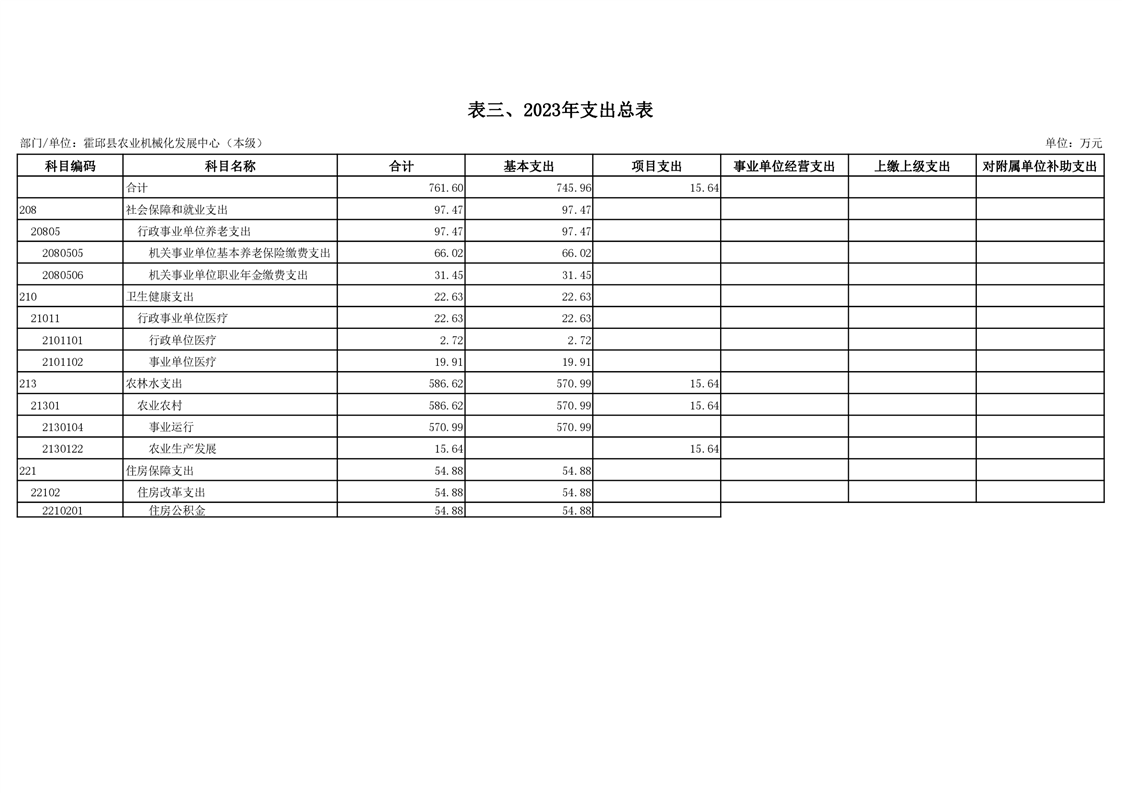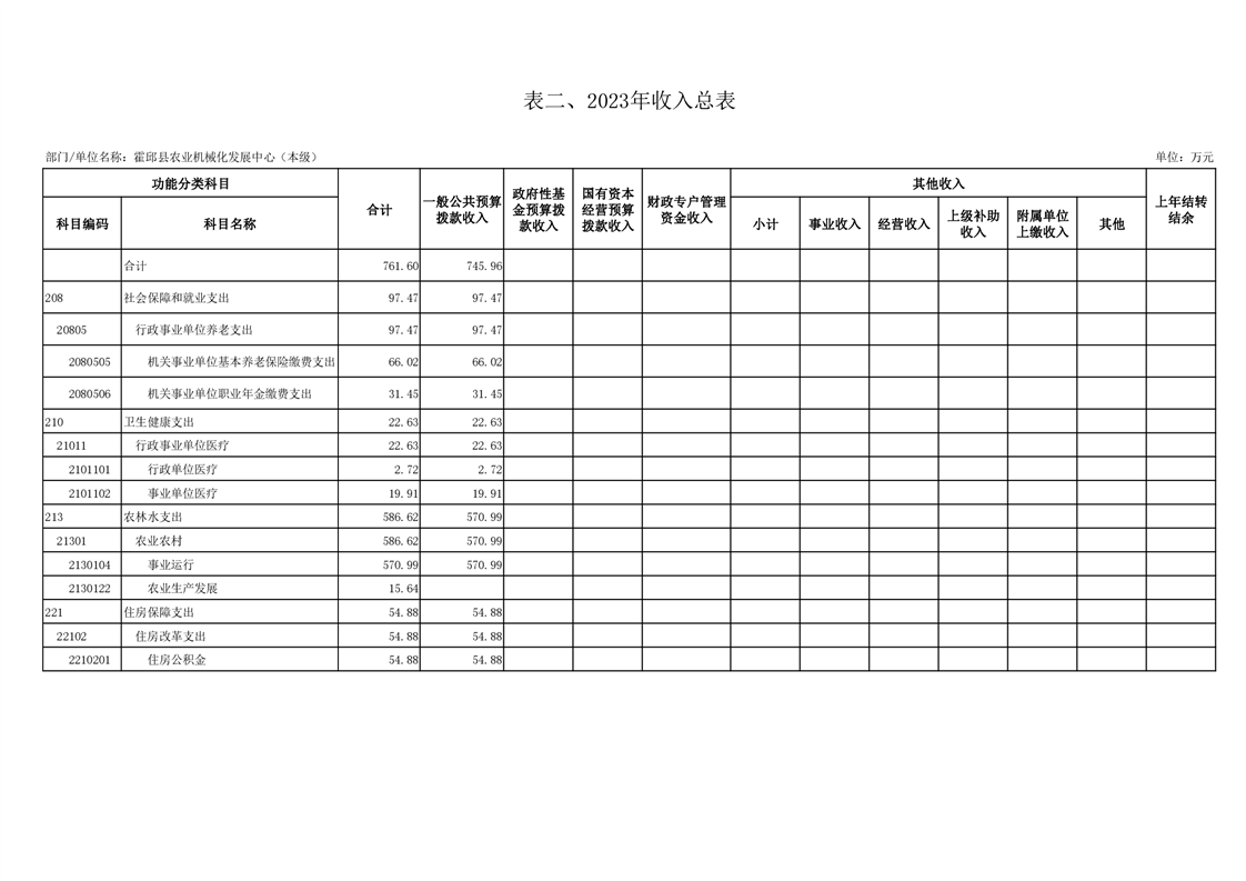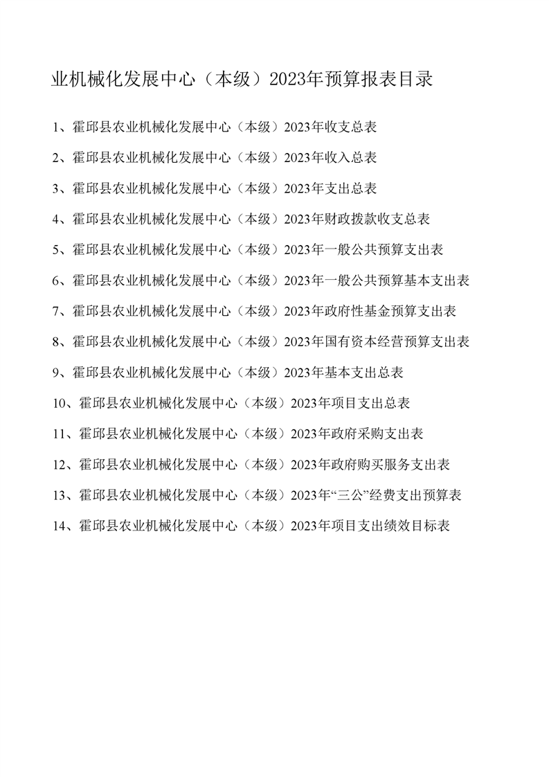 霍邱县农业机械化发展中心(本级)2023年单位预算公开