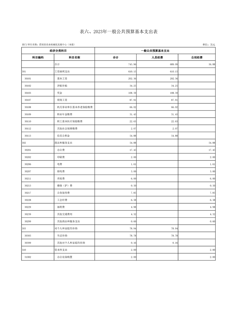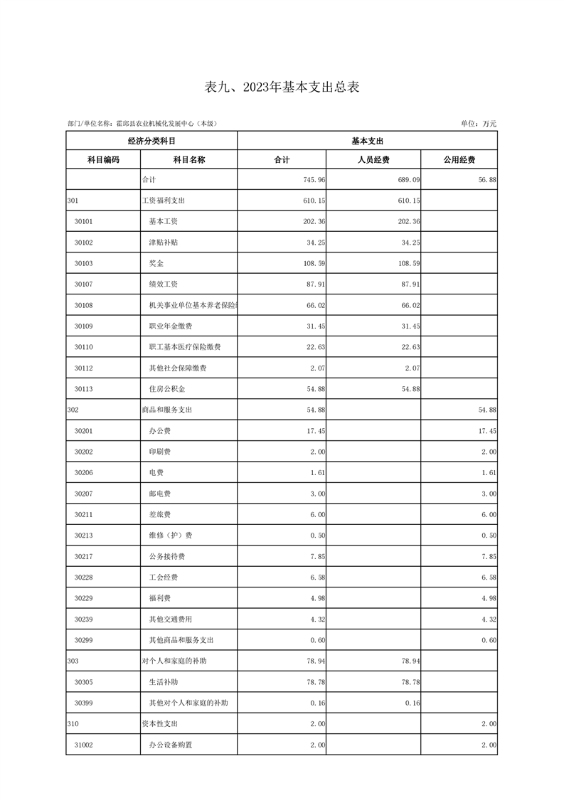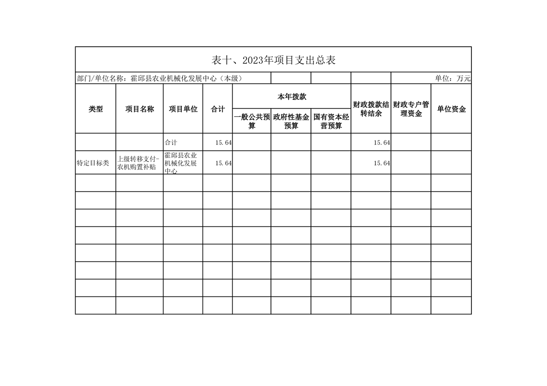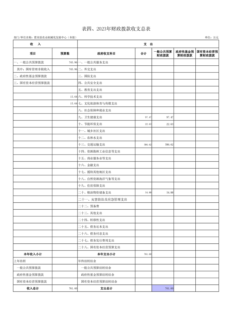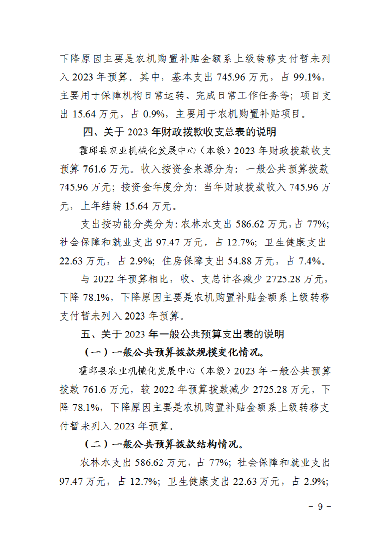 霍邱县农业机械化发展中心(本级)2023年单位预算公开