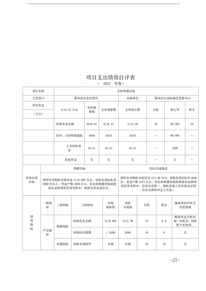 霍邱县农业机械化发展中心2022年度部门决算