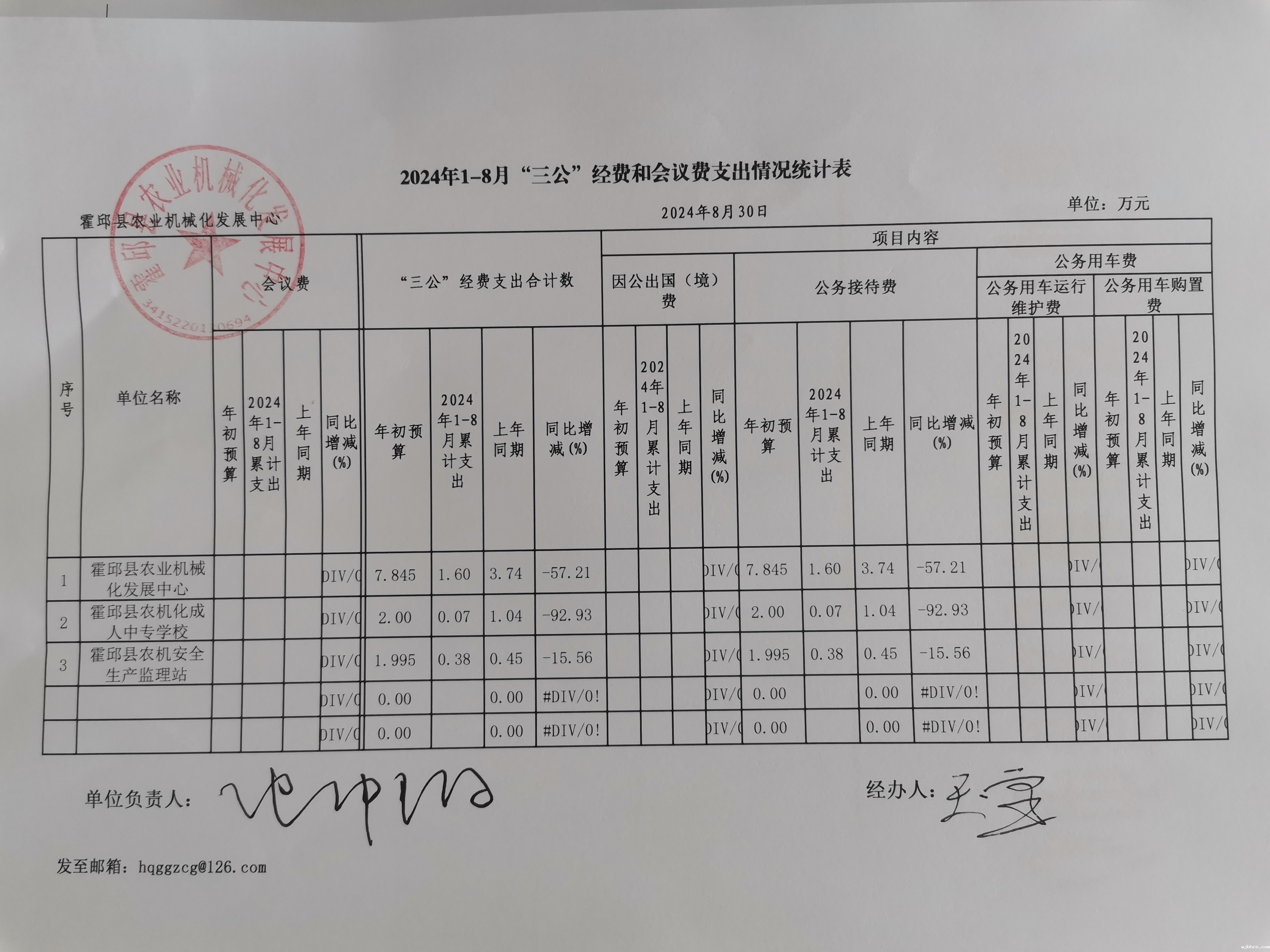 霍邱县农业机械化发展中心2024年1-8月“三公”经费