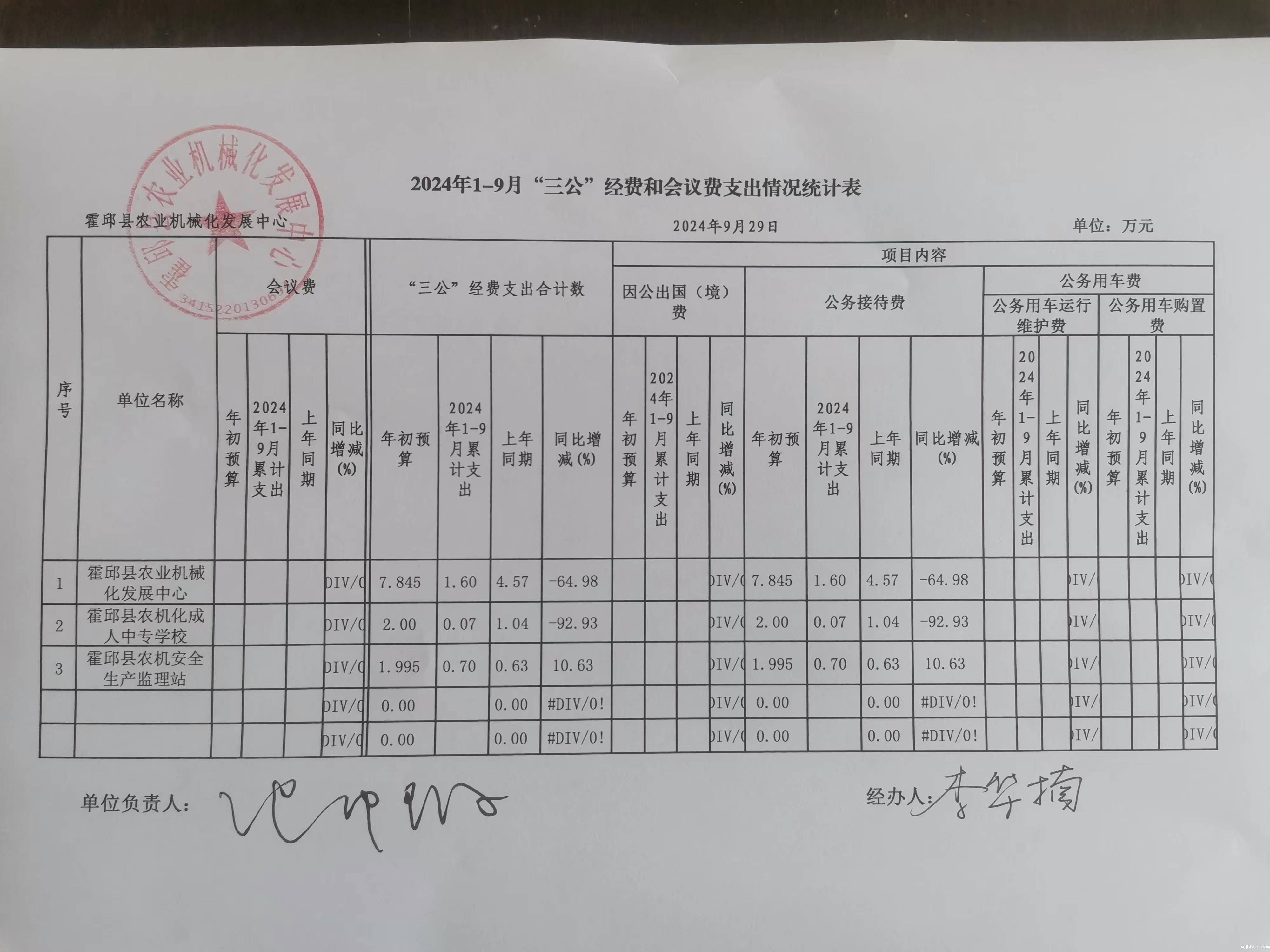 霍邱县农业机械化发展中心2024年1-9月“三公”经费
