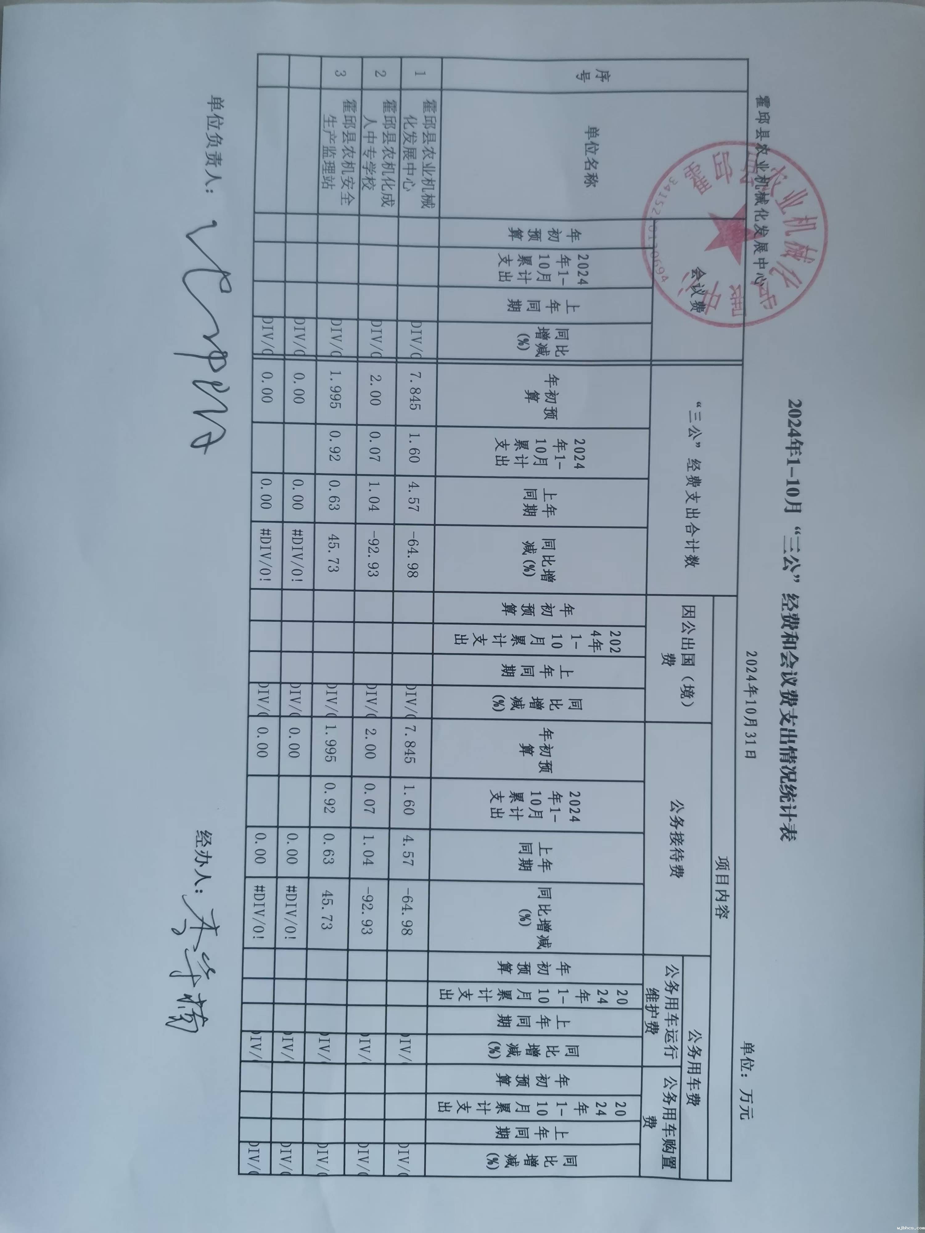 霍邱县农业机械化发展中心2024年1-10月“三公”经费