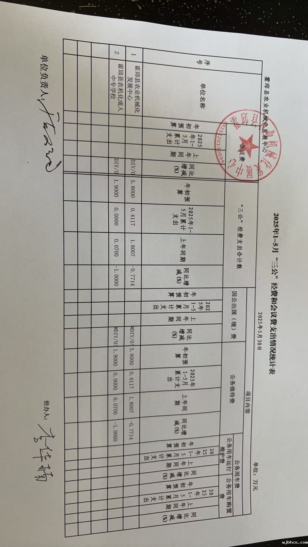 霍邱县农业机械化发展中心2025年1-5月“三公”经费