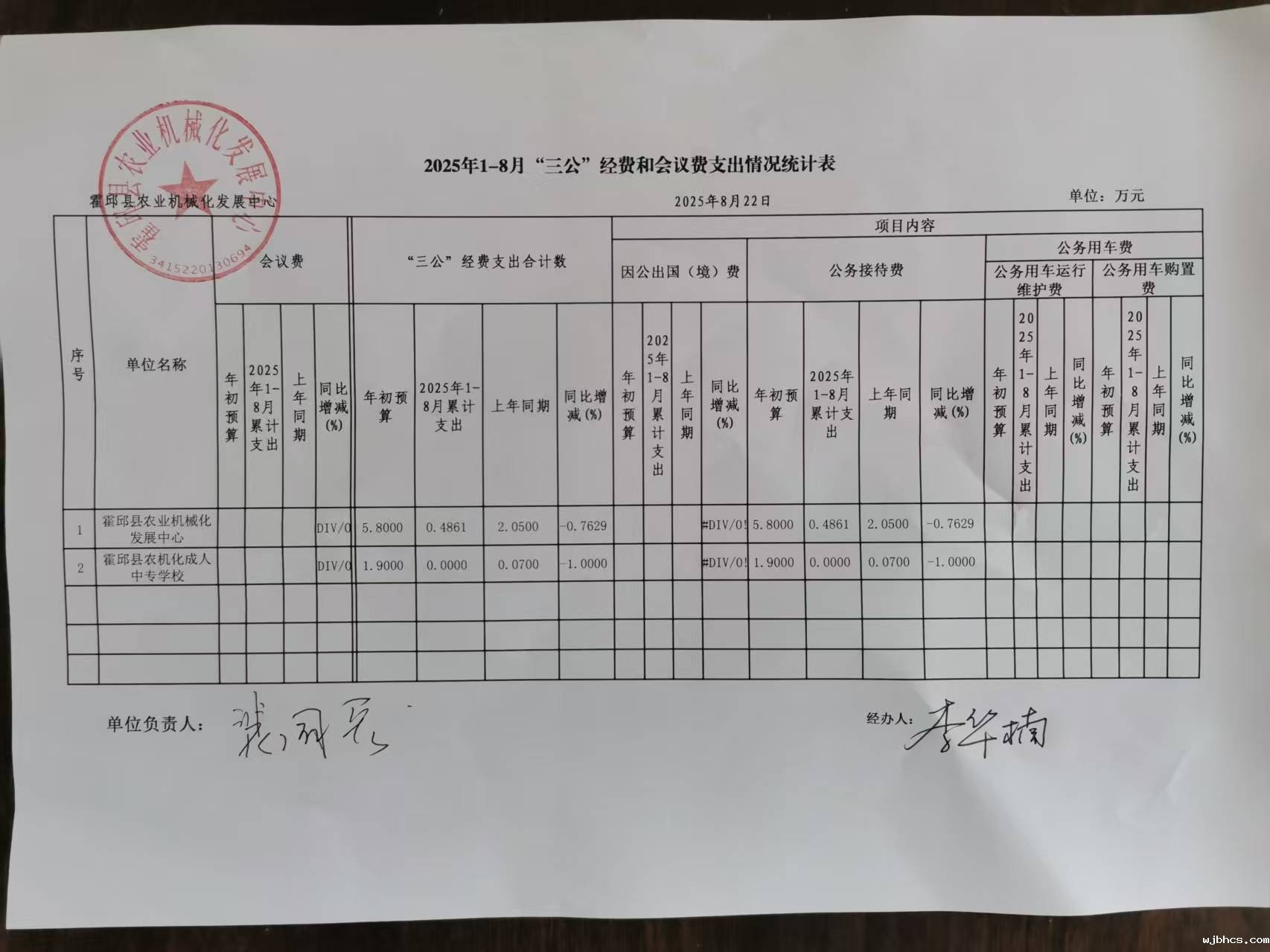 霍邱县农业机械化发展中心2025年1-8月“三公”经费