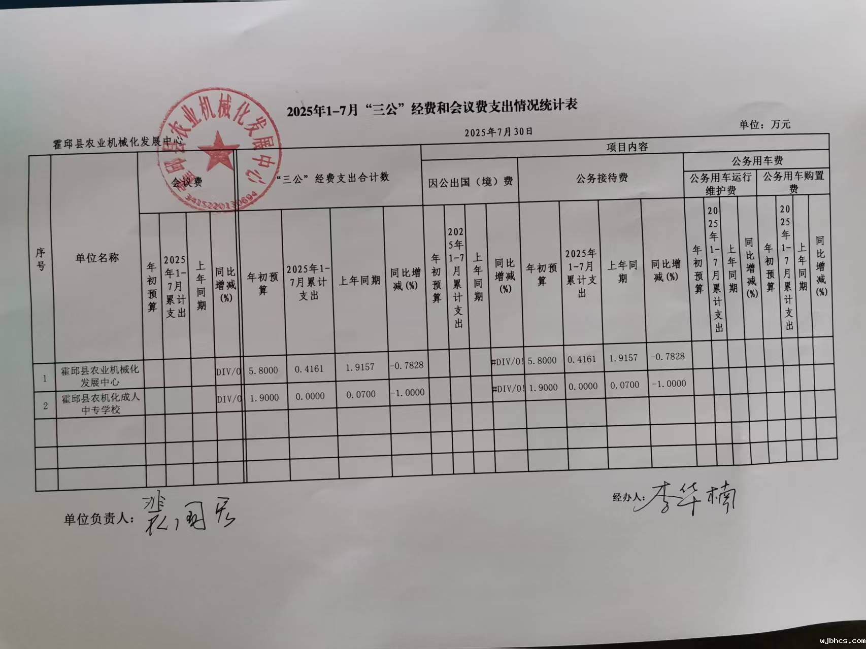 霍邱县农业机械化发展中心2025年1-7月“三公”经费
