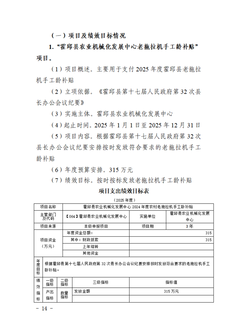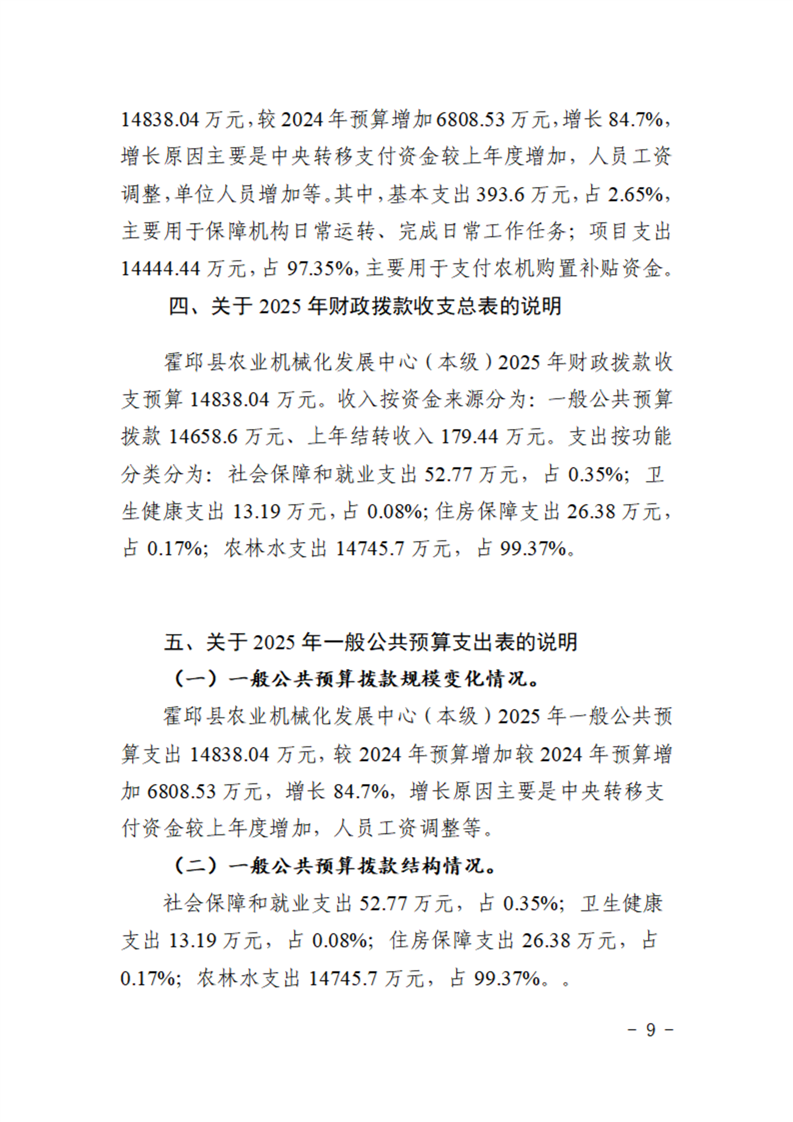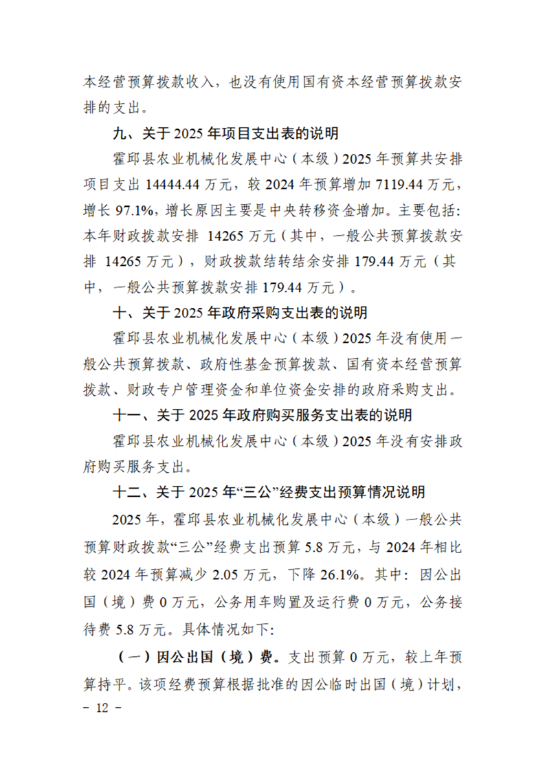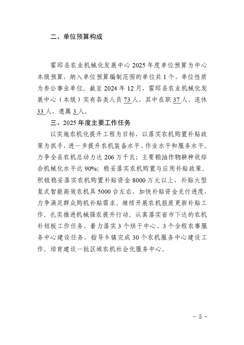 霍邱县农业机械化发展中心(本级)2025年单位预算公开