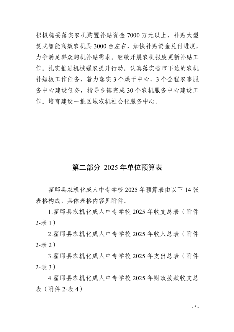 霍邱县农机化成人中专学校2025年单位预算公开
