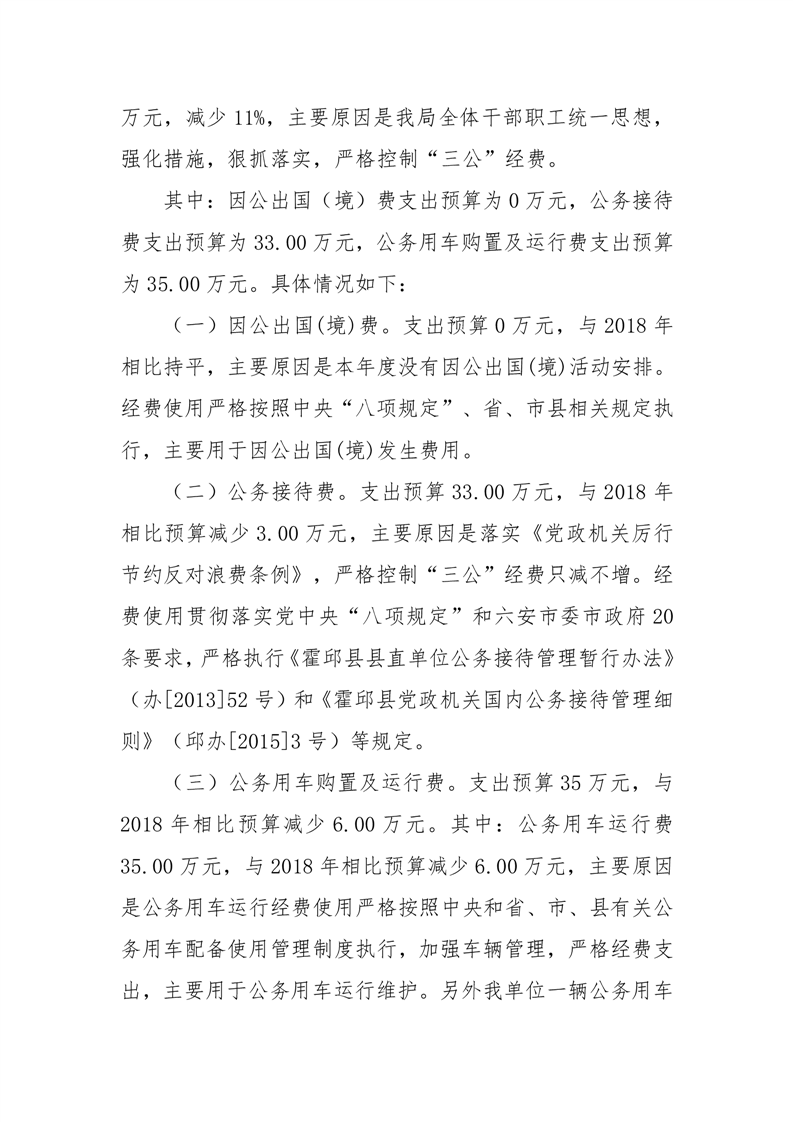 六安市公路管理局霍邱分局 2019 年“三公”经费情况