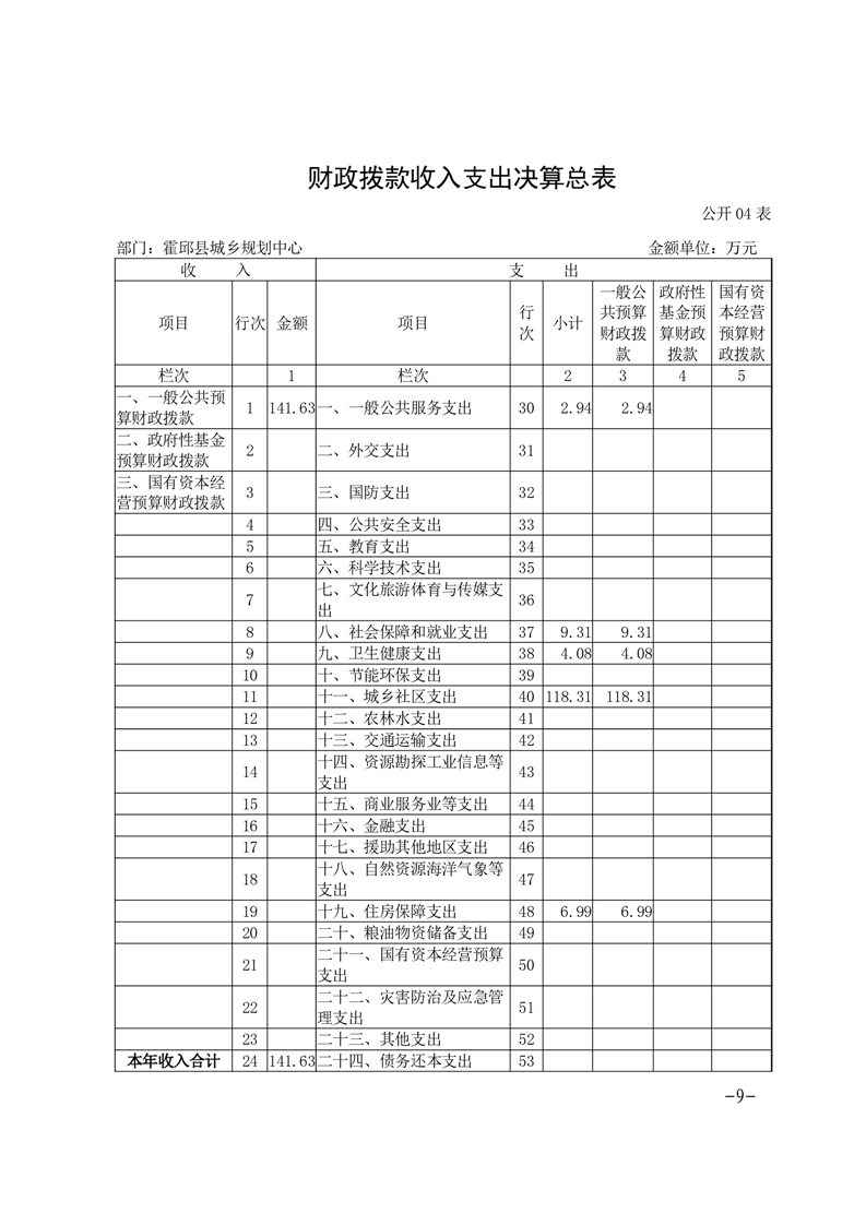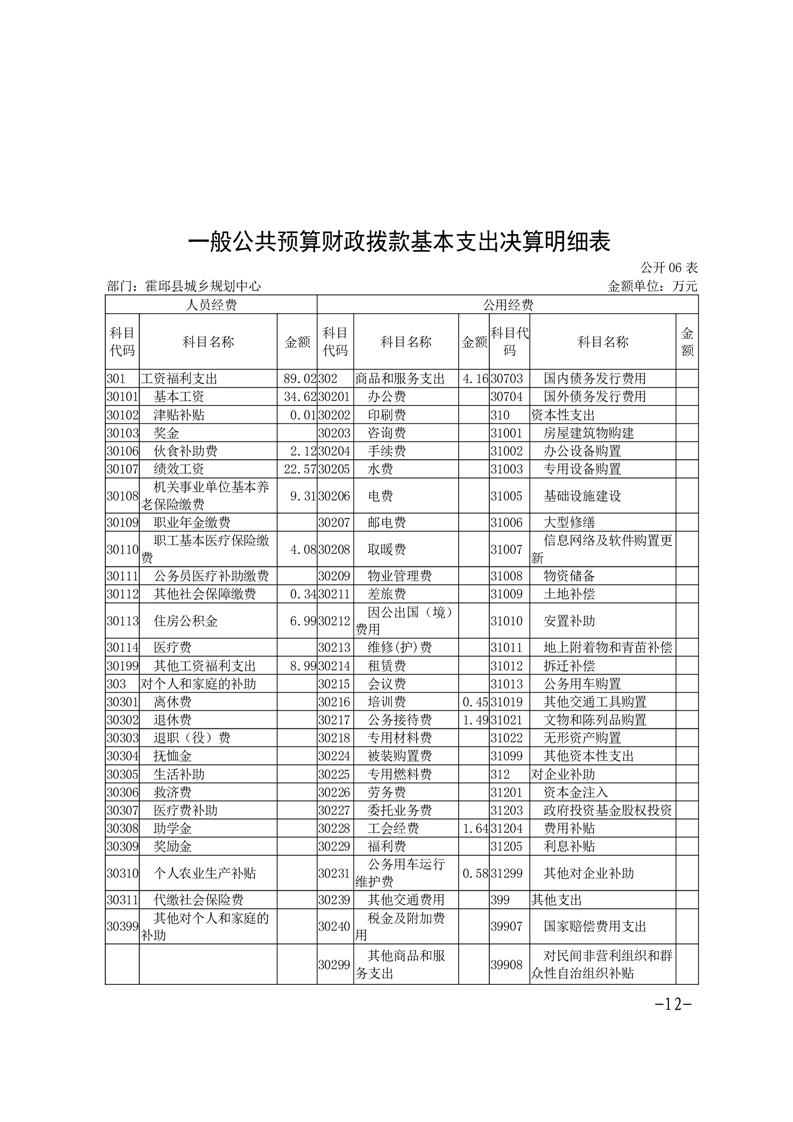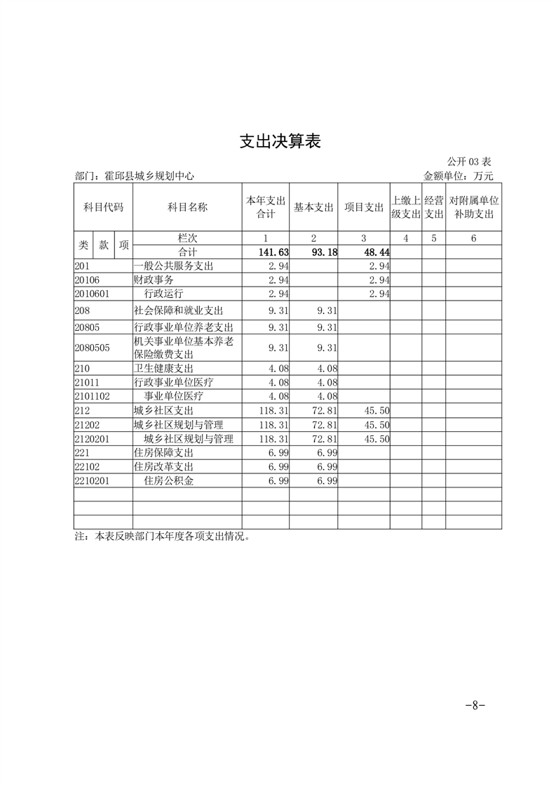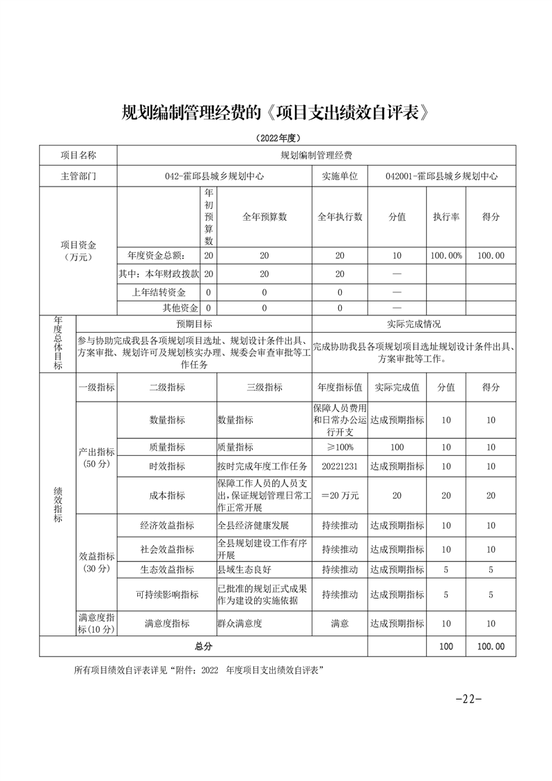 霍邱县城乡规划中心2022年部门决算