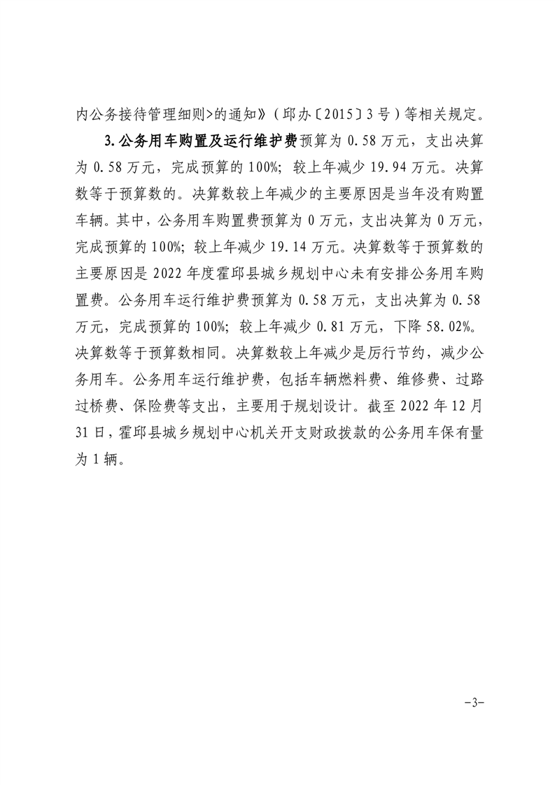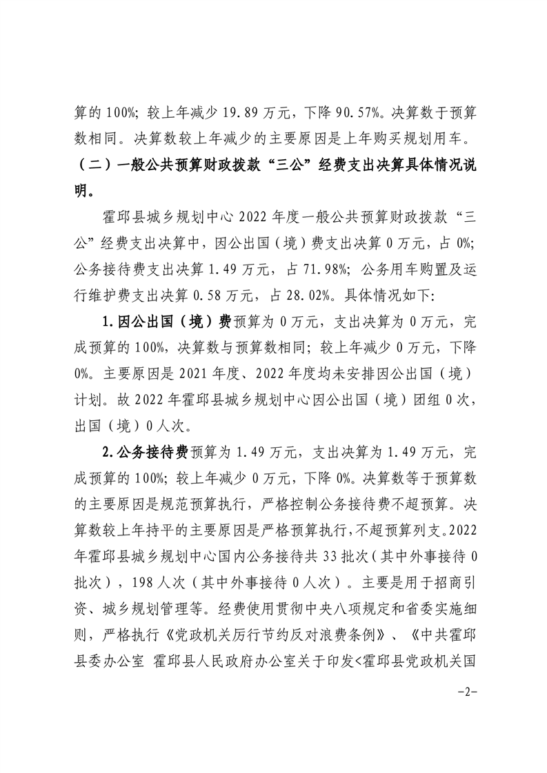 霍邱县城乡规划中心2022年三公经费决算公开