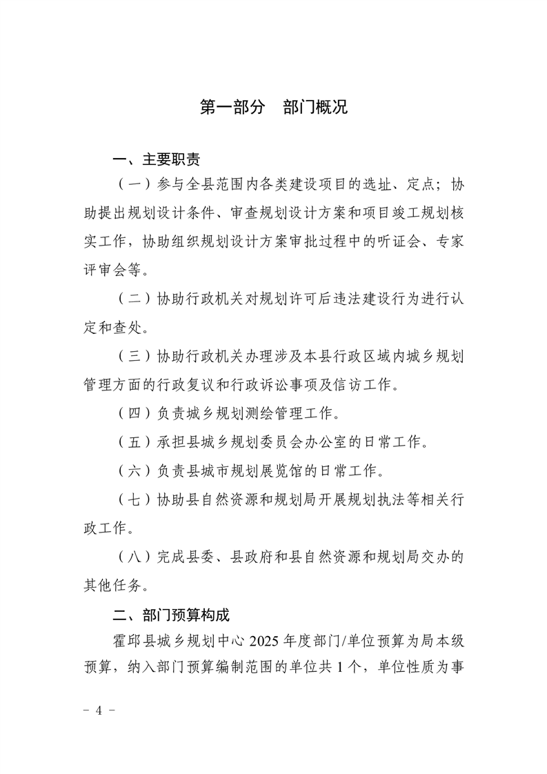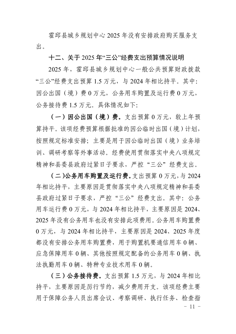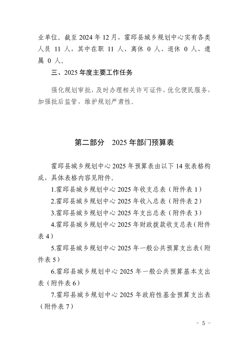 霍邱县城乡规划中心2025年部门预算公开