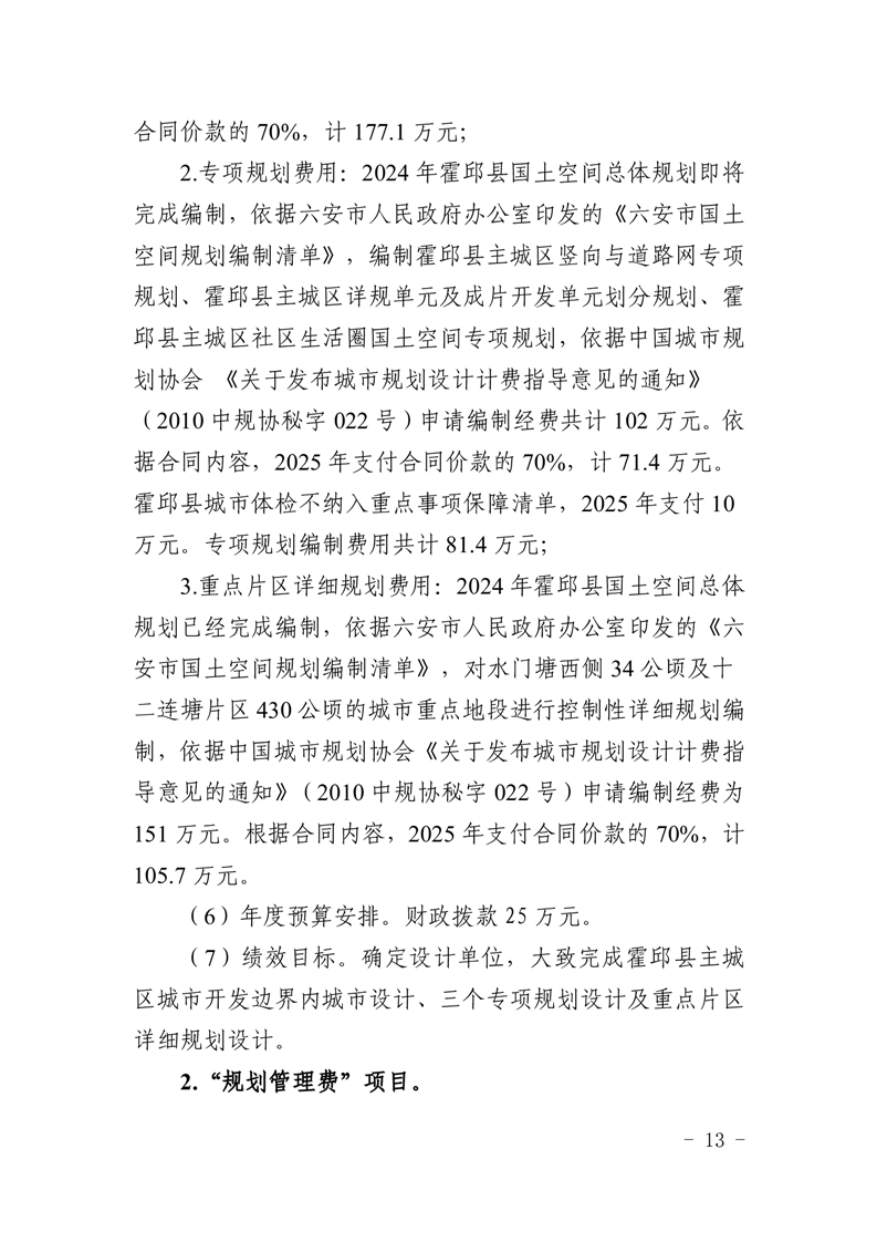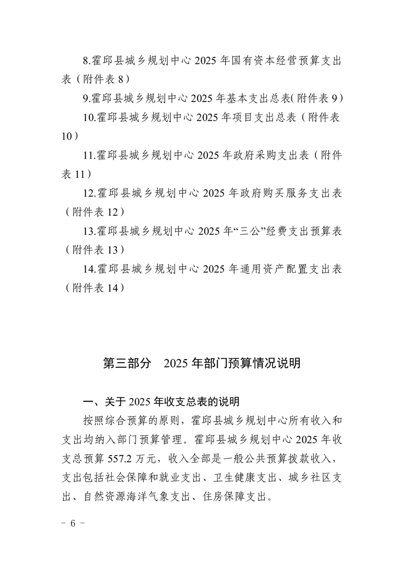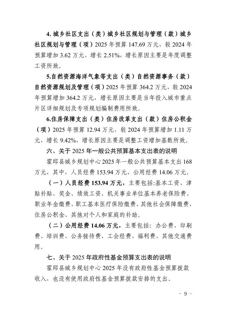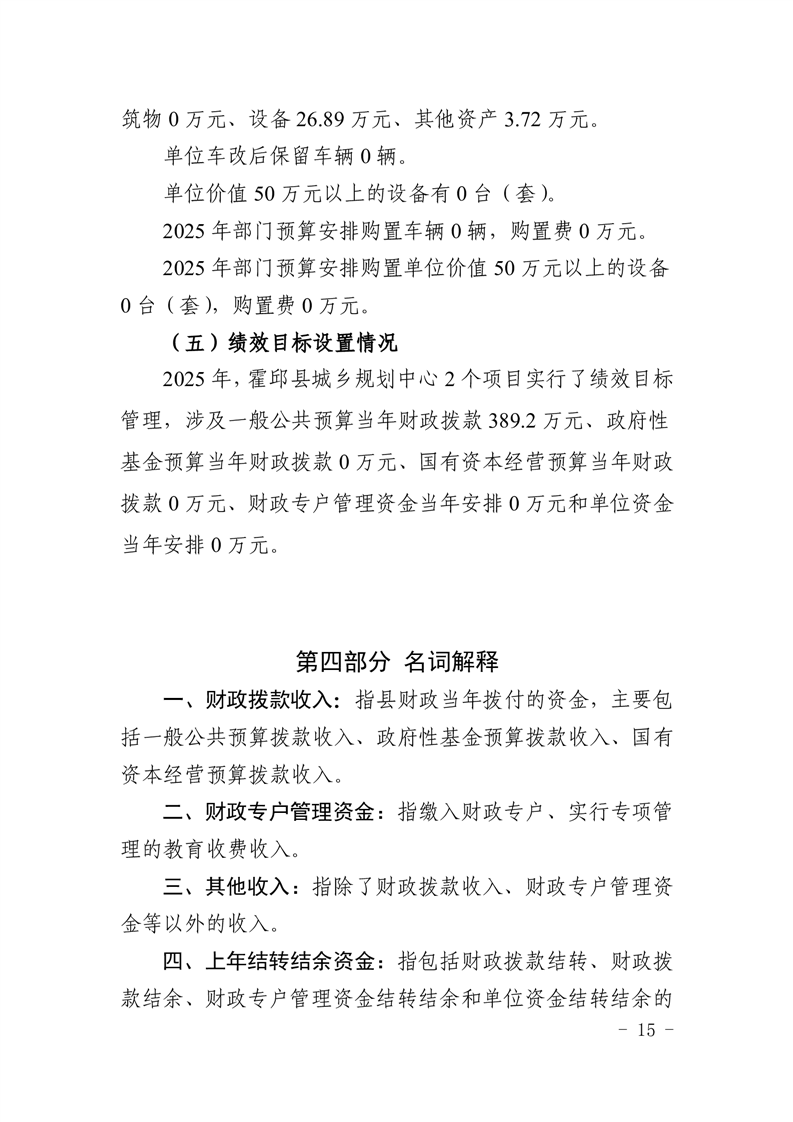 霍邱县城乡规划中心2025年部门预算公开