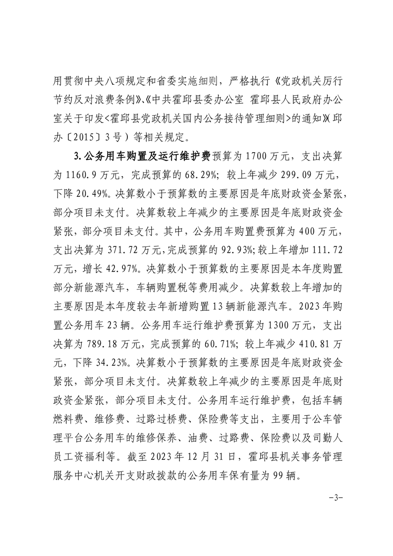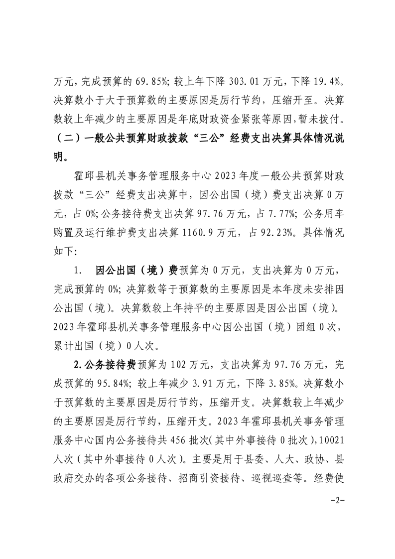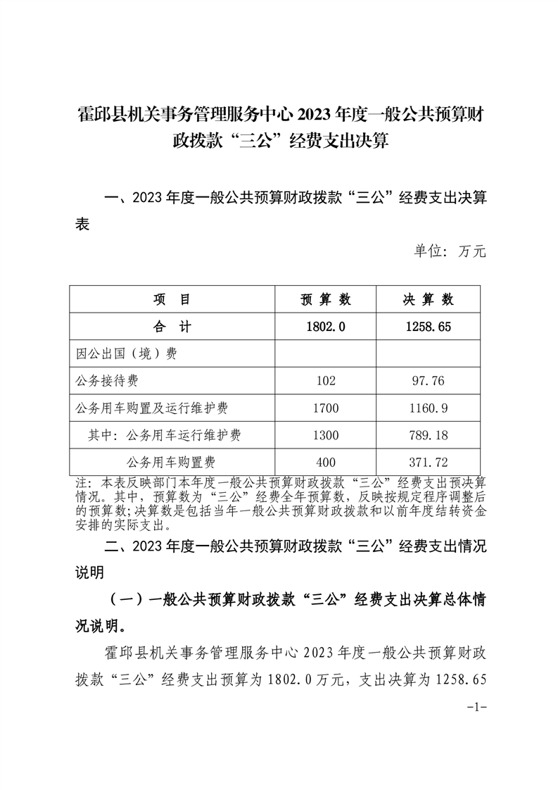 霍邱县机关事务管理服务中心2023年度一般公共预算财政拨款“三公”经费支出决算