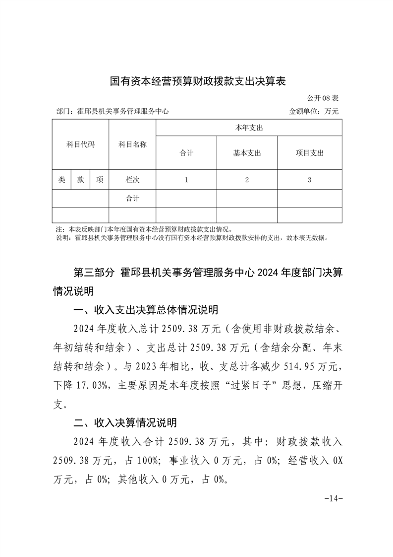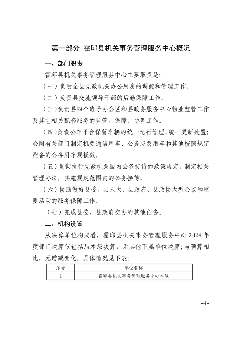霍邱县机关事务管理服务中心2024年度部门决算公开