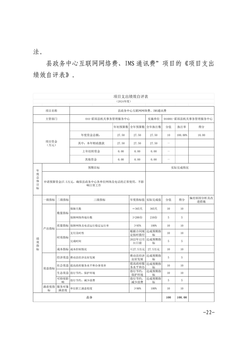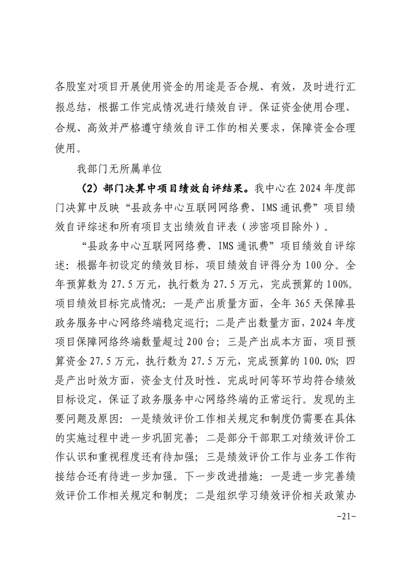 县政务中心互联网网络费、IMS通讯费项目支出绩效评价报告(2024年度).pdf