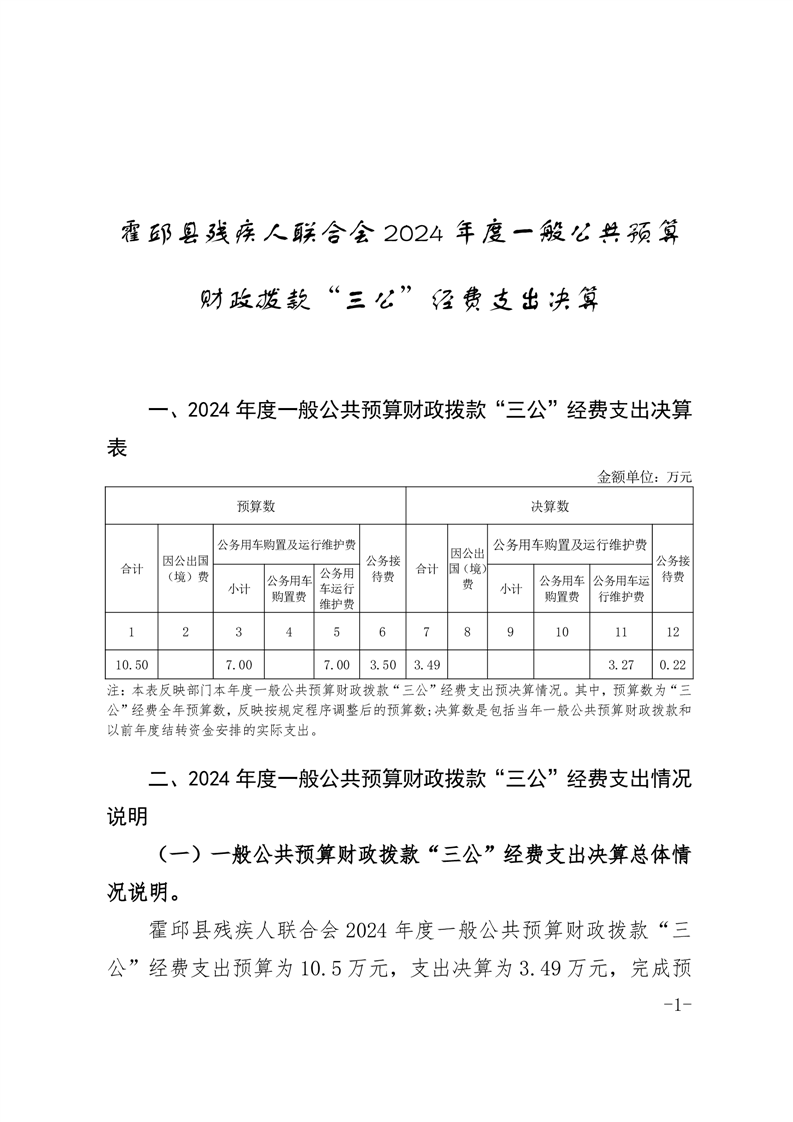霍邱县残疾人联合会 2024 年度一般公共预算