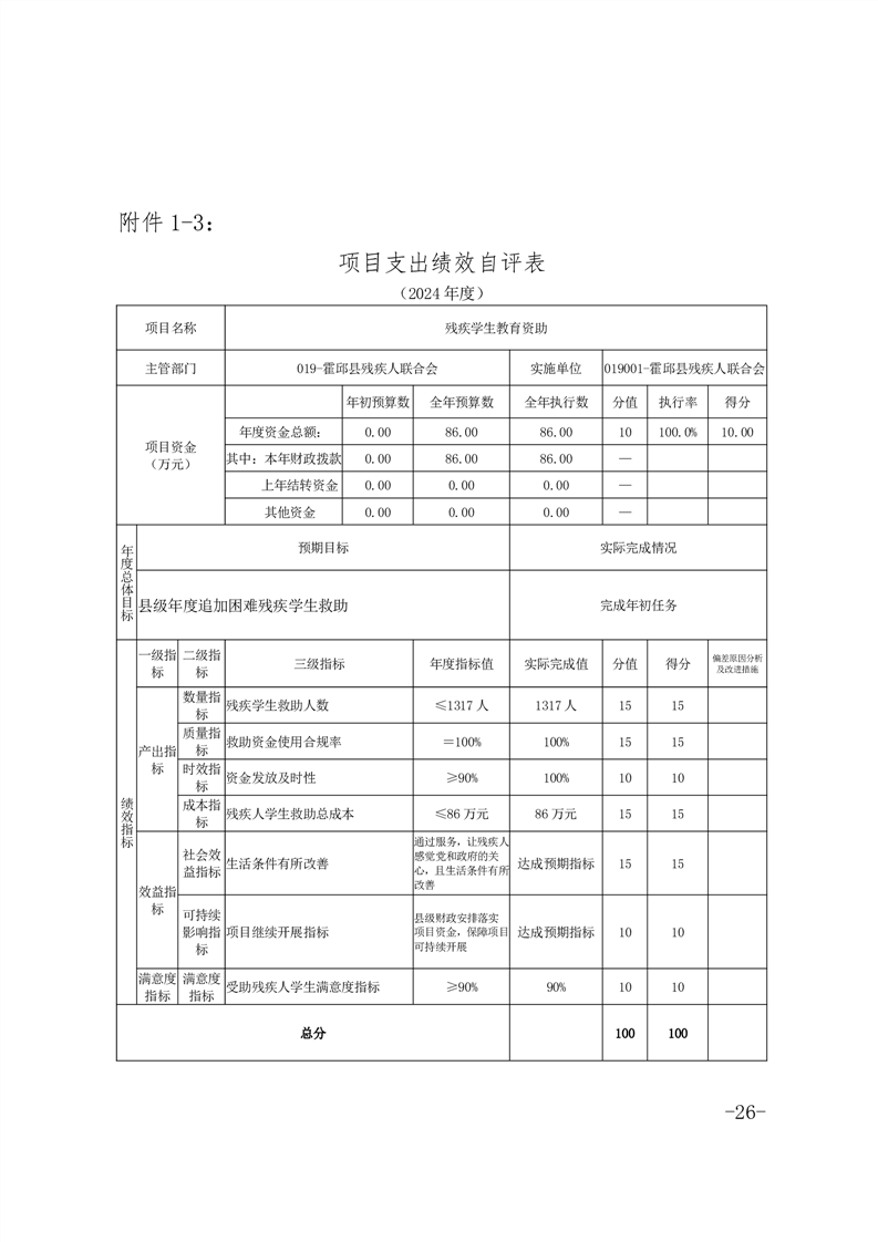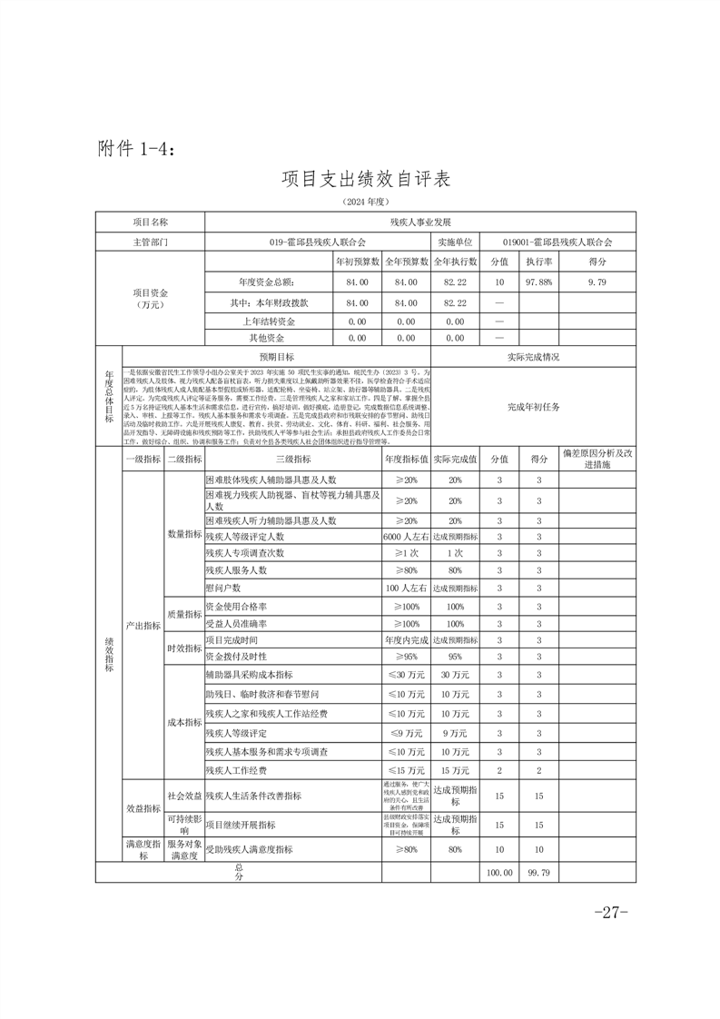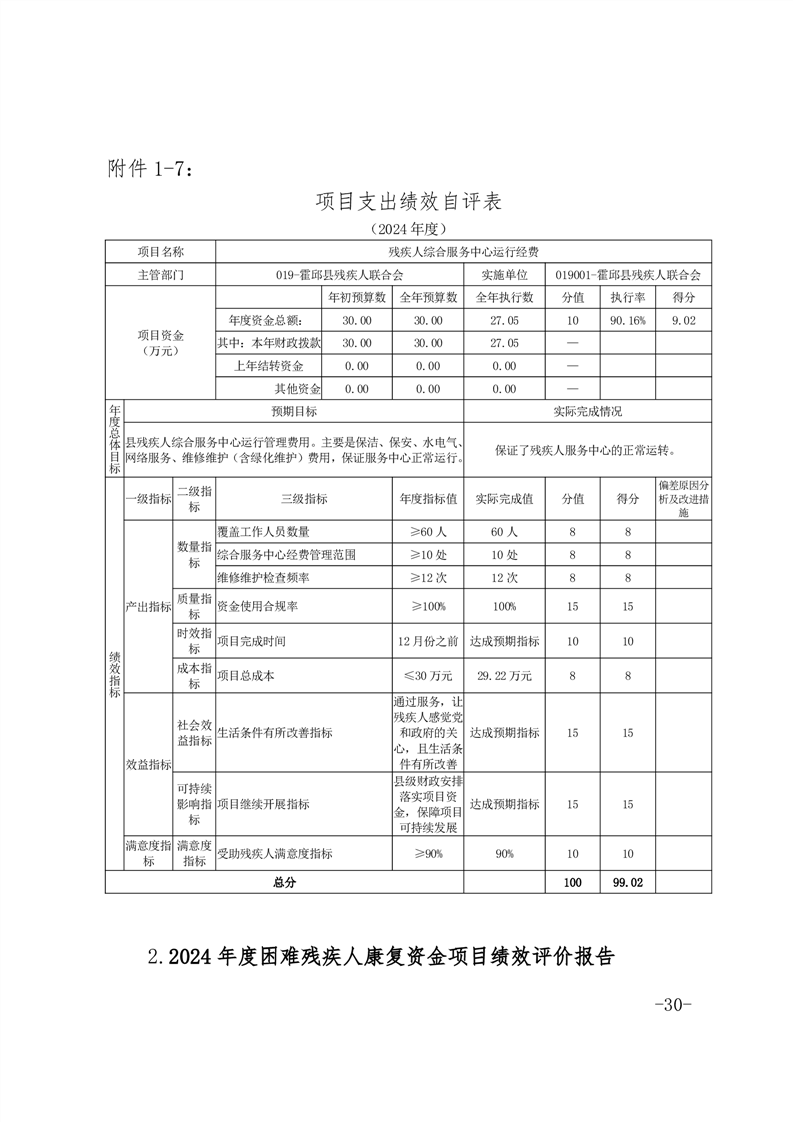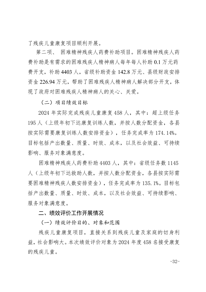 2024年度困难残疾人康复工程项目绩效评价报告(含各项目支出绩效自评表)