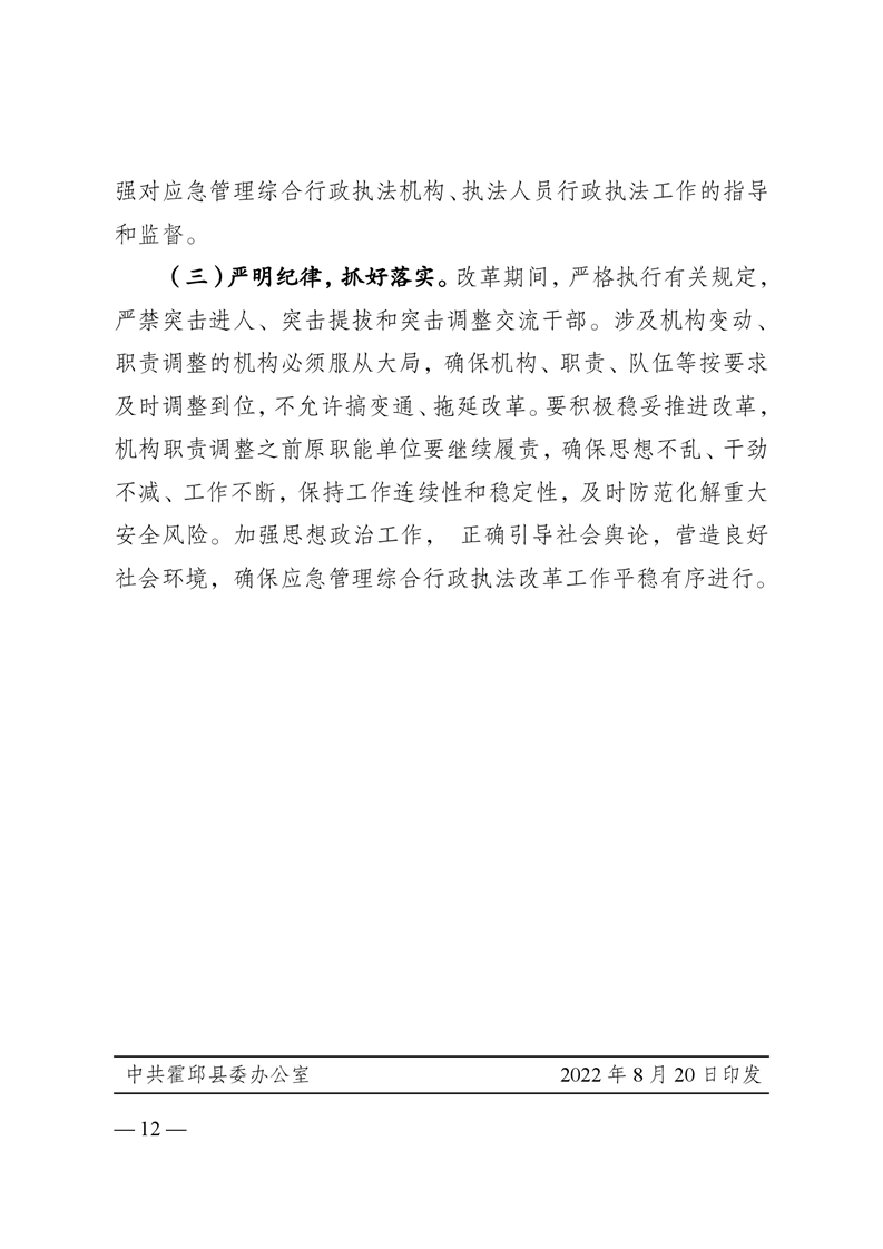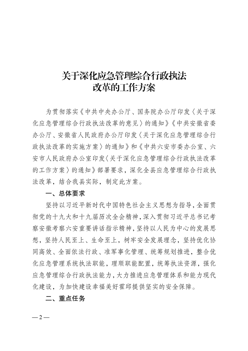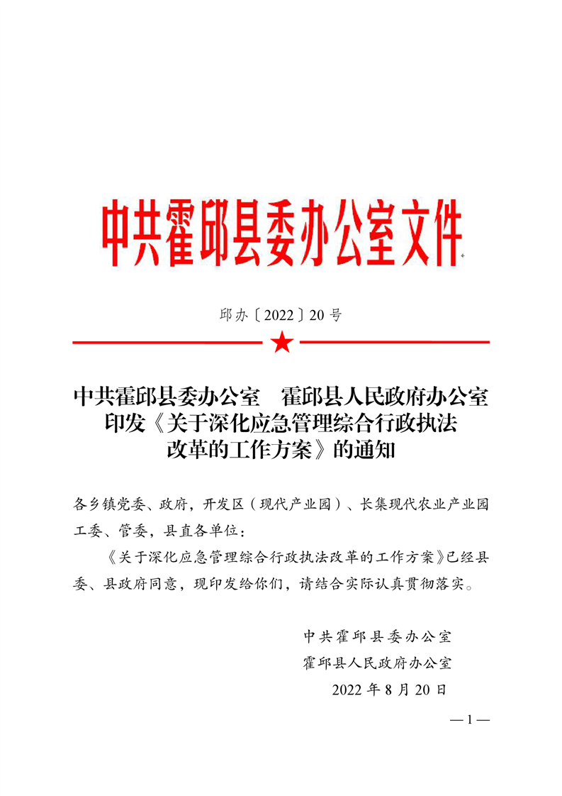 霍邱县供销社转发《关于深化应急管理综合行政执法改革的工作方案》的通知