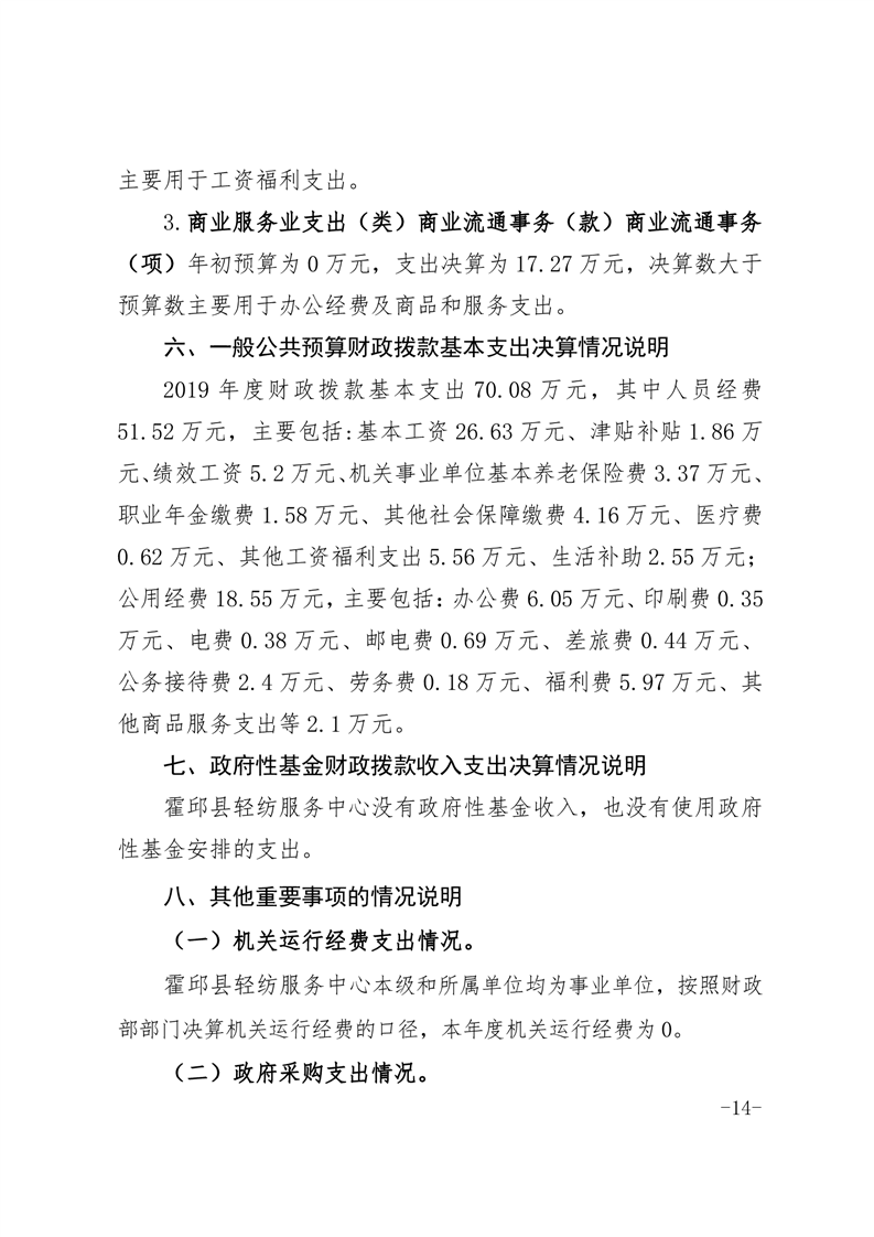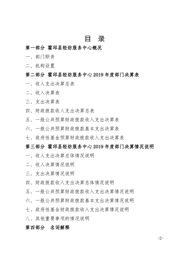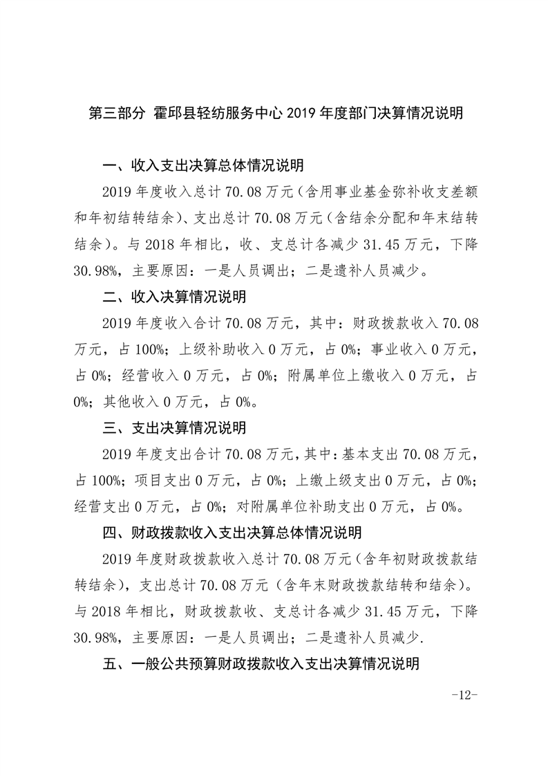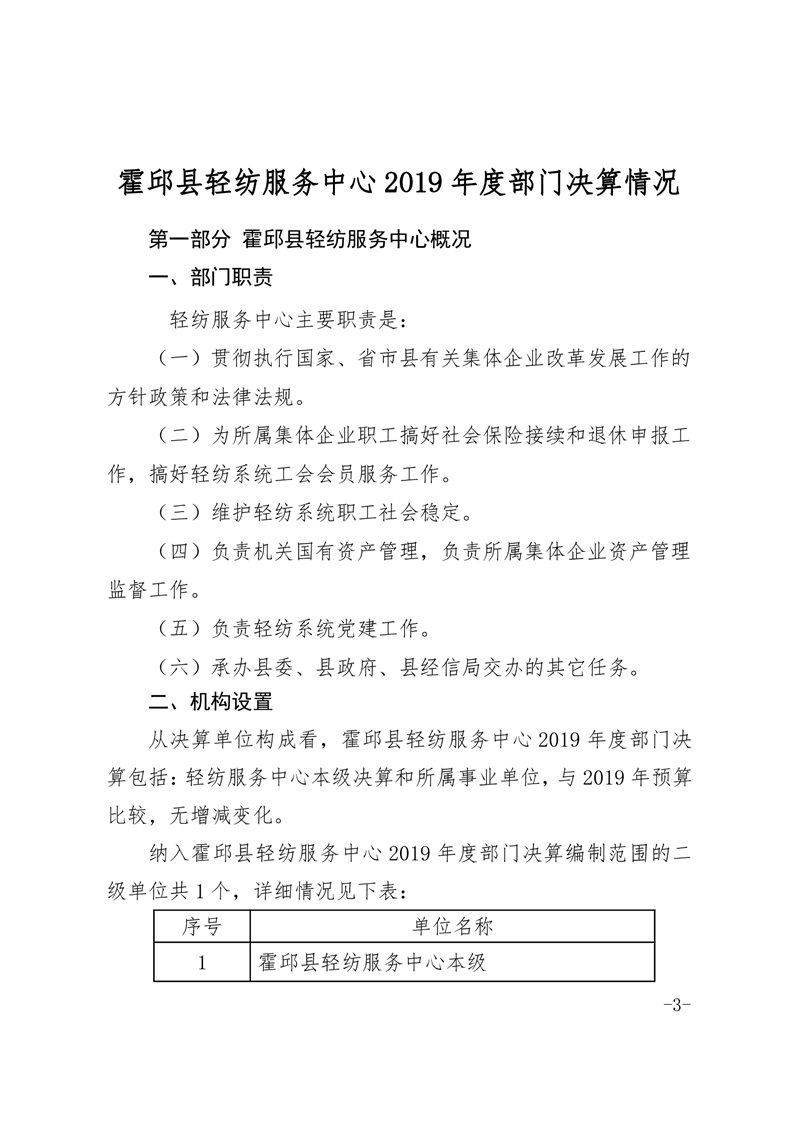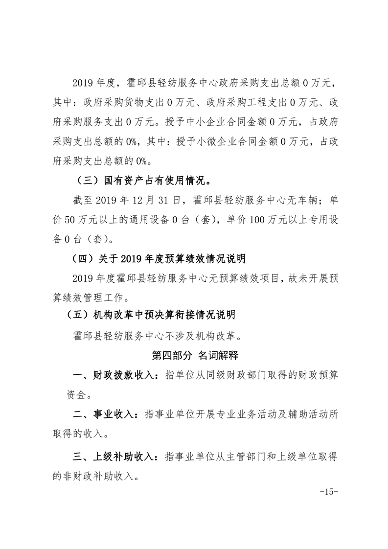 霍邱县轻纺服务中心2019年部门决算公开