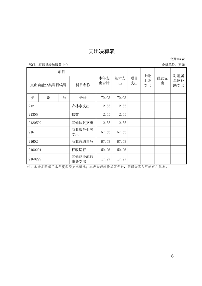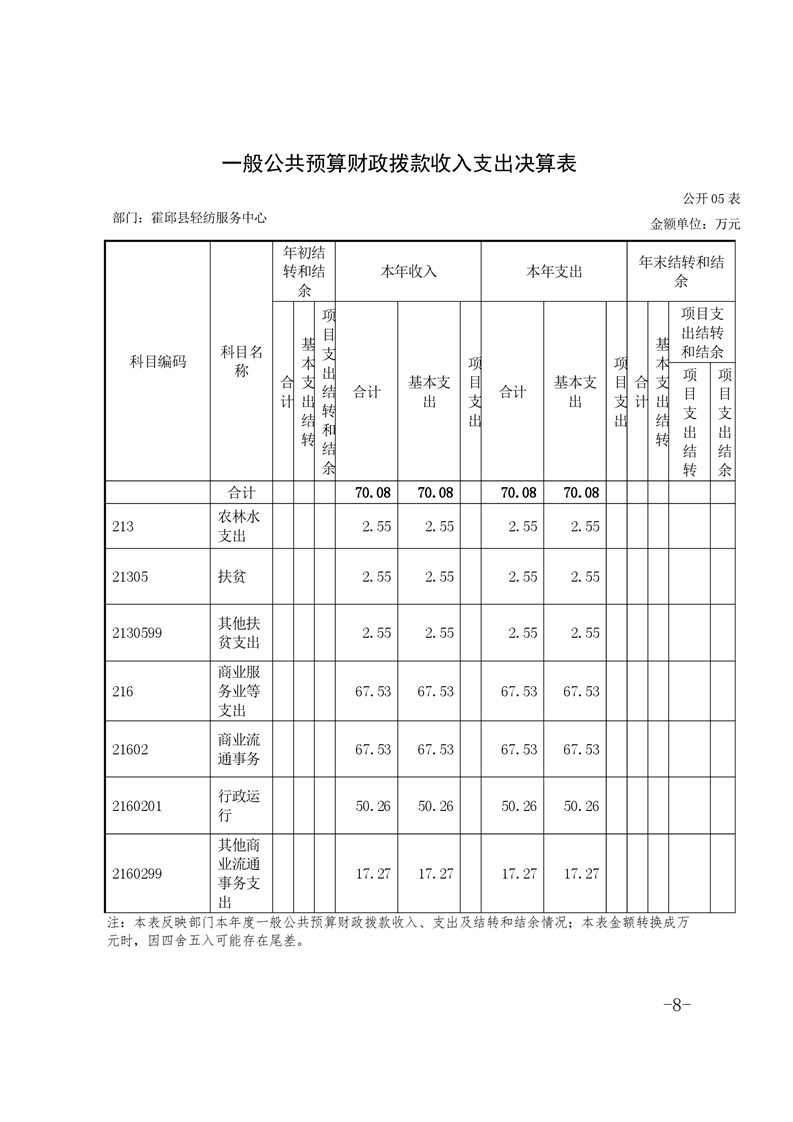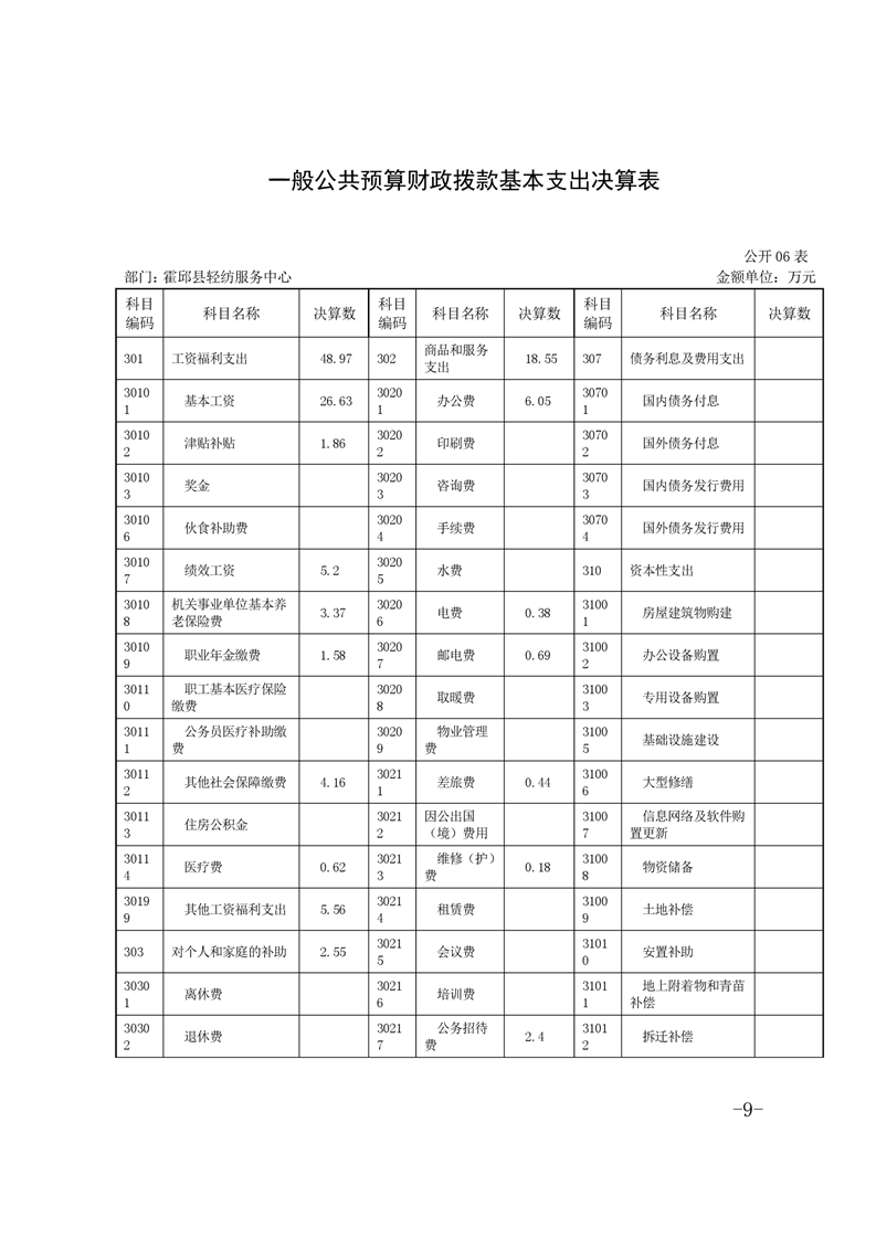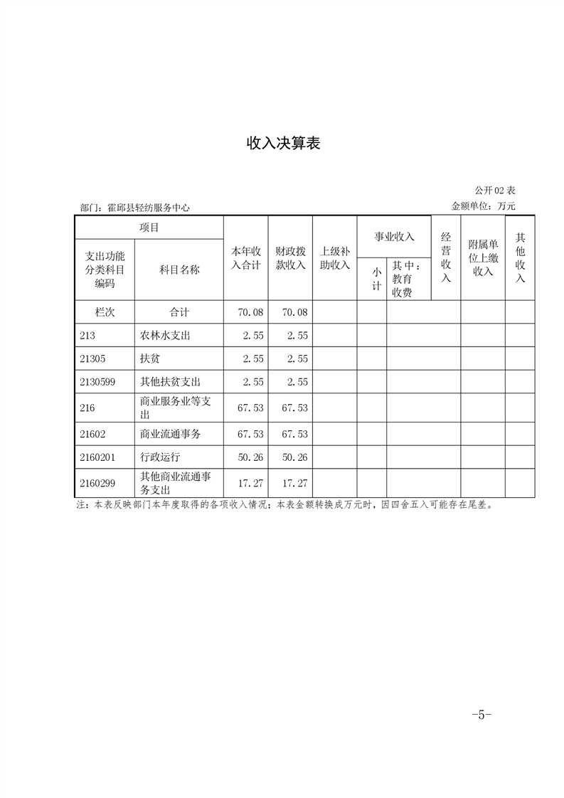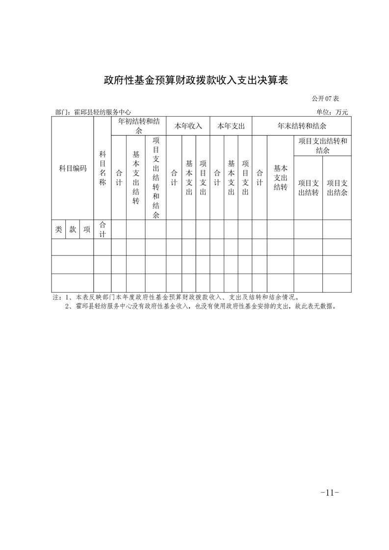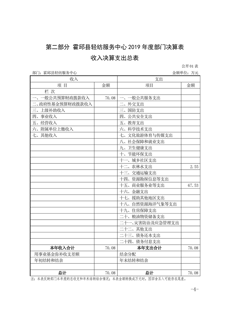 霍邱县轻纺服务中心2019年部门决算公开
