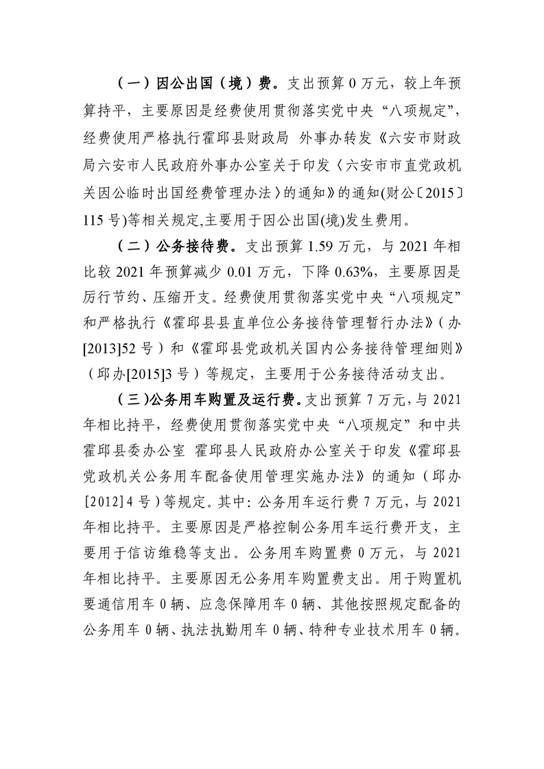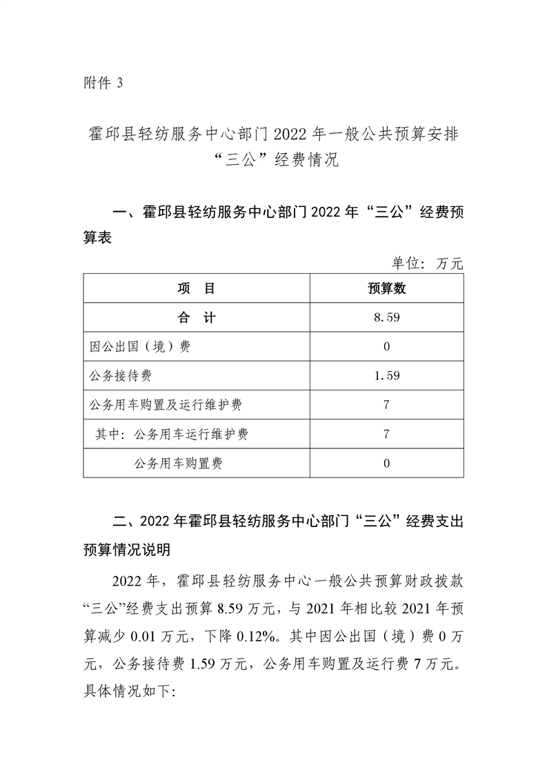 霍邱县轻纺服务中心部门2022年一般公共预算安排“三公”经费情况