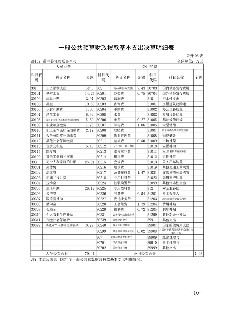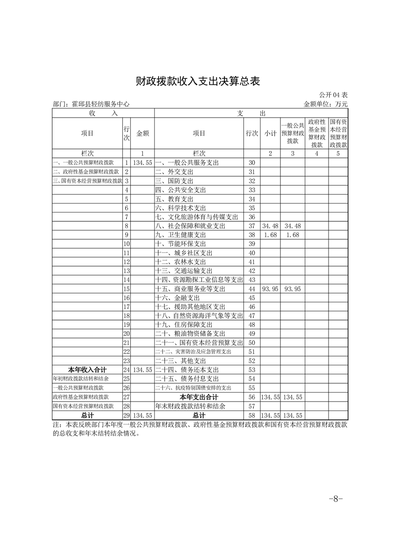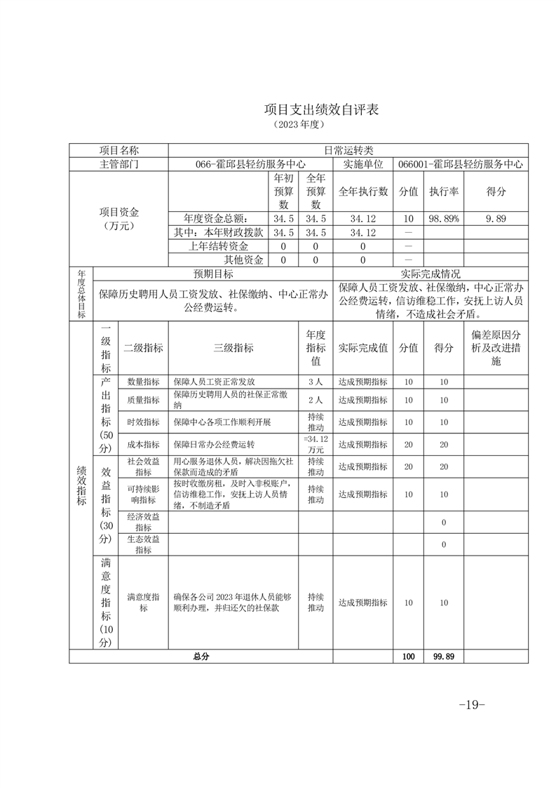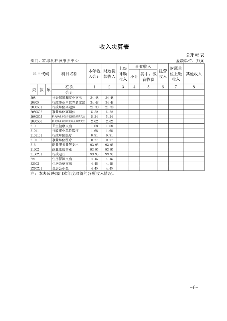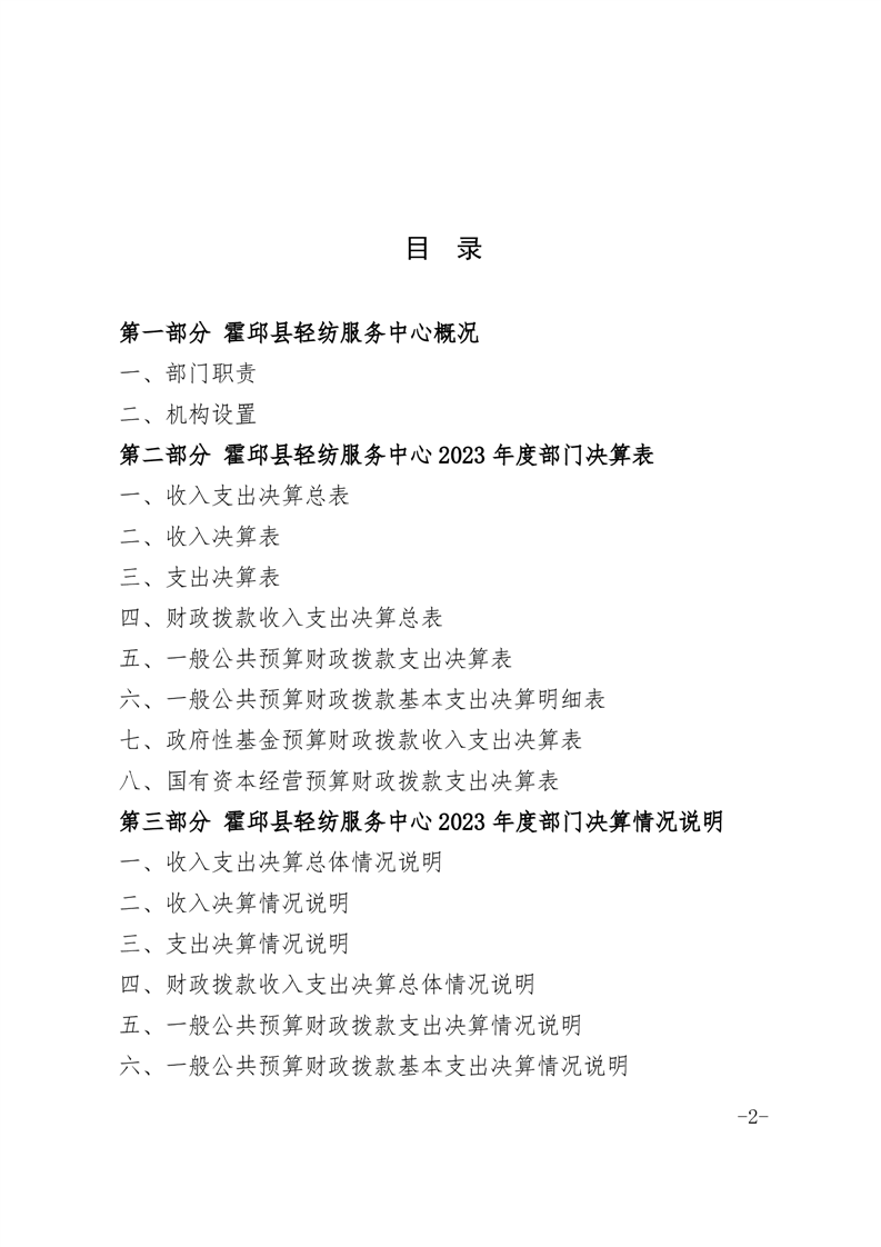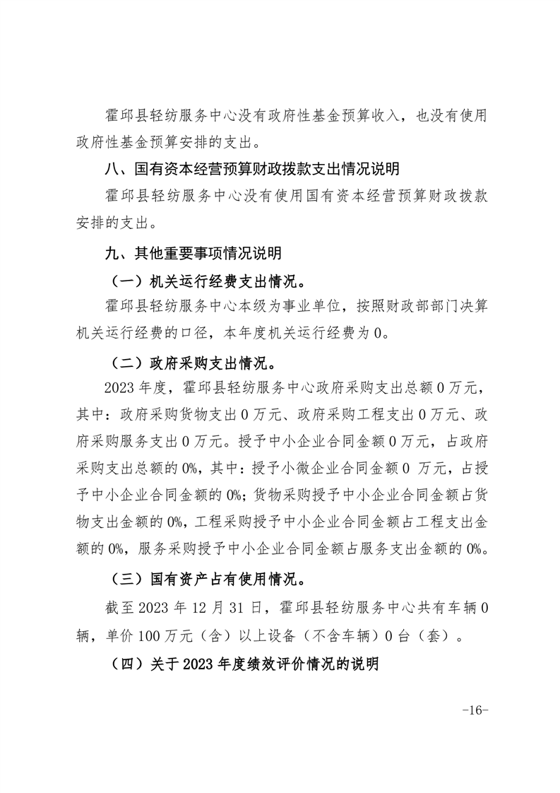 霍邱县轻纺服务中心2023年度部门决算公开