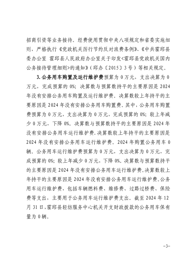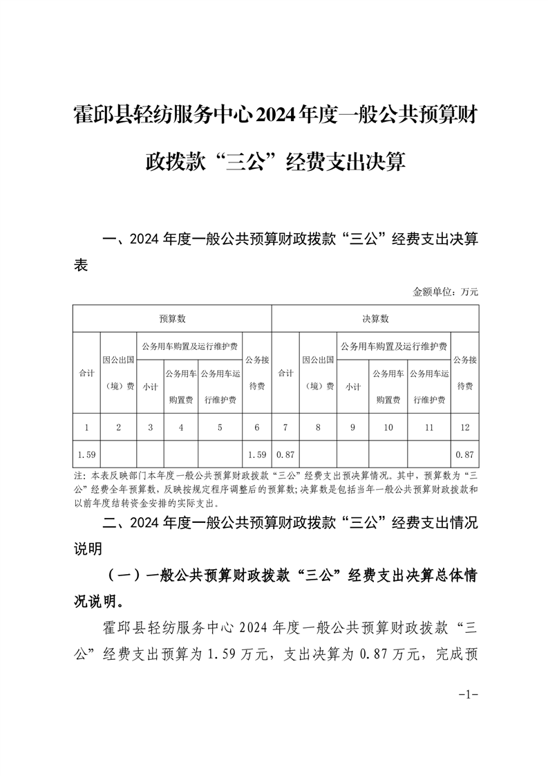 霍邱县轻纺服务中心2024年度一般公共预算财政拨款”三公”经费支出决算