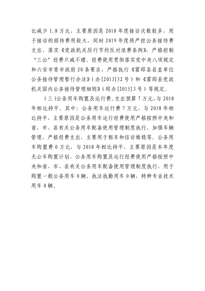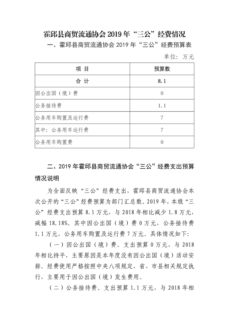 霍邱县商贸流通协会2019年度部门“三公”经费预算公开
