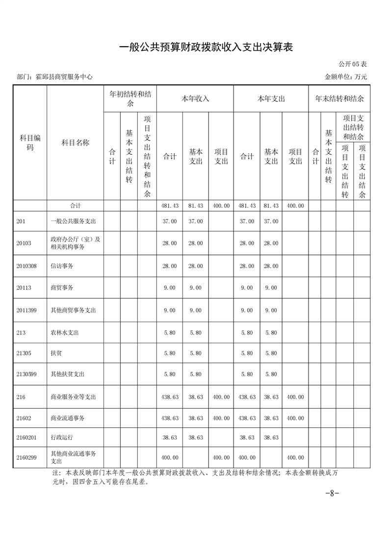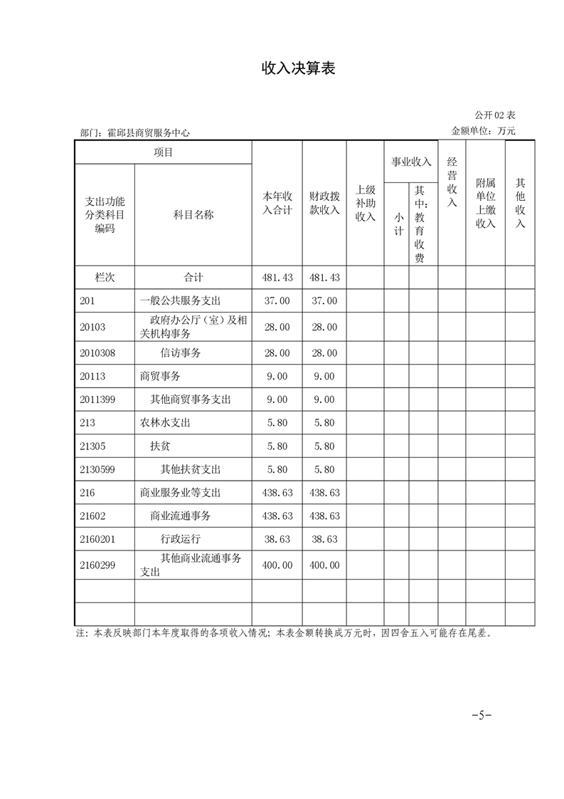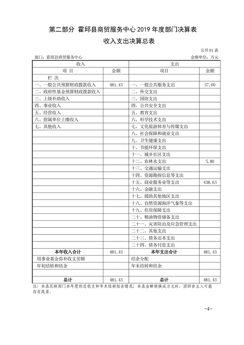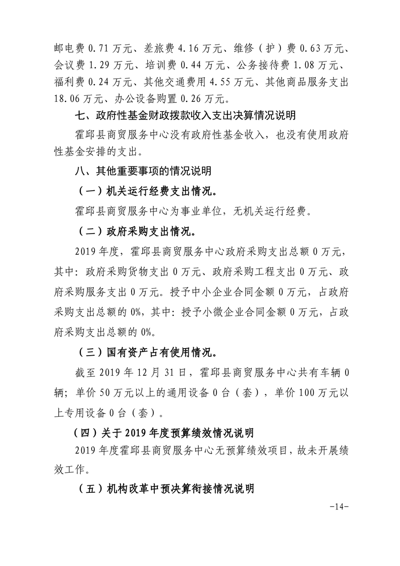 霍邱县商贸服务中心2019年度部门决算