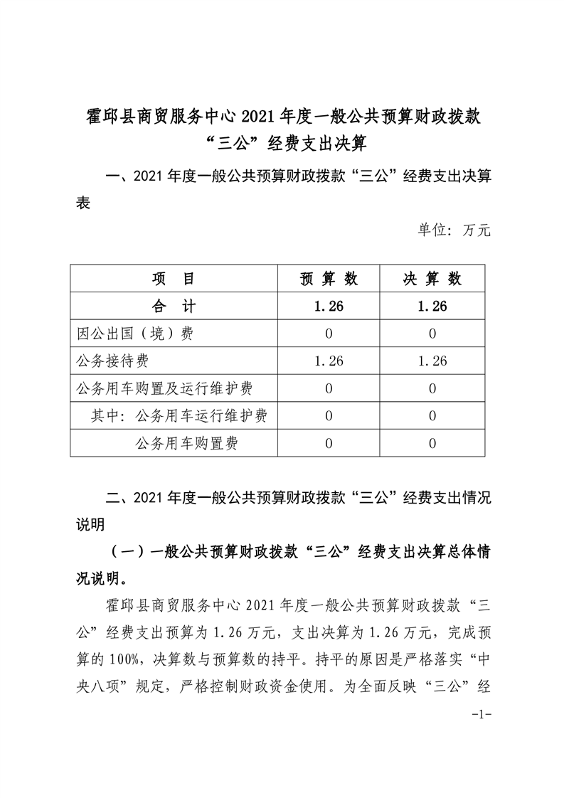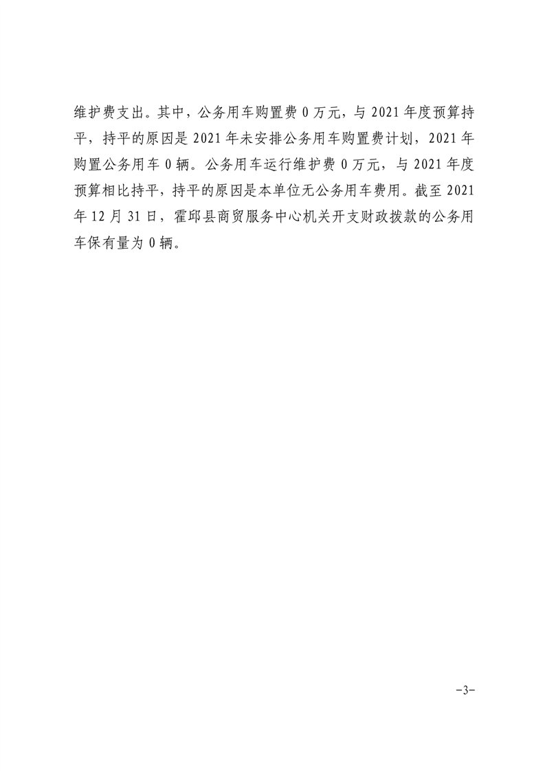 霍邱县商贸服务中心 2021 年度一般公共预算财政拨款 “三公”经费支出决算