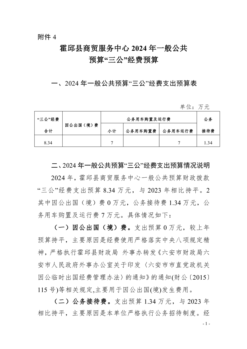 霍邱县商贸服务中心2024年“三公经费”预算公开