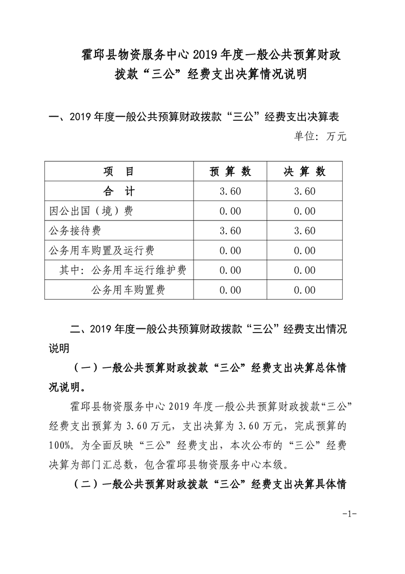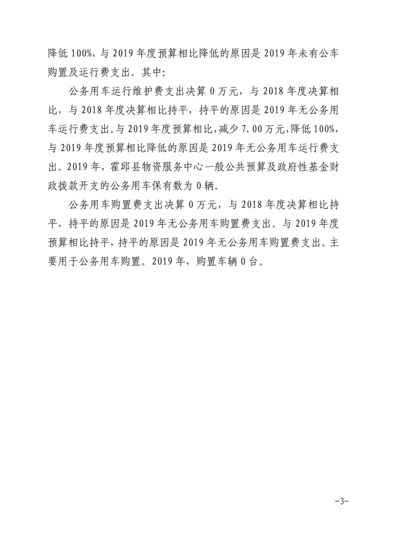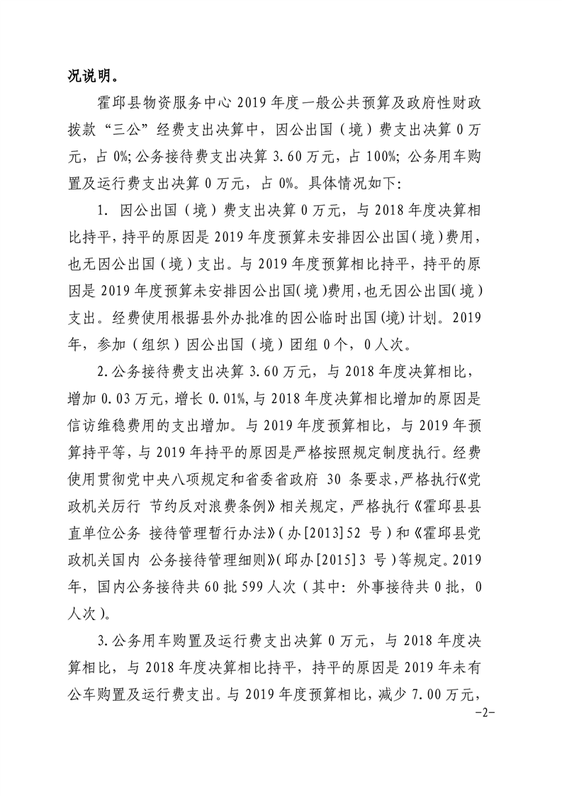 霍邱县物资服务中心2019年度一般公共预算财政拨款“三公”经费支出决算情况说明