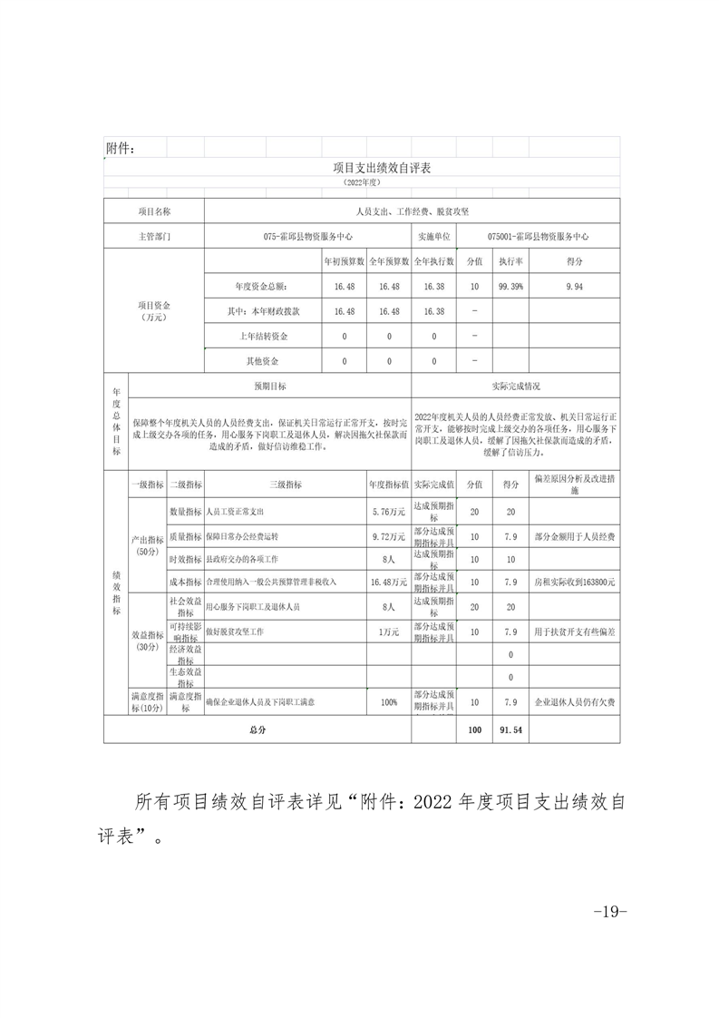 霍邱县物资服务中心2022年度项目支出绩效自评表.pdf