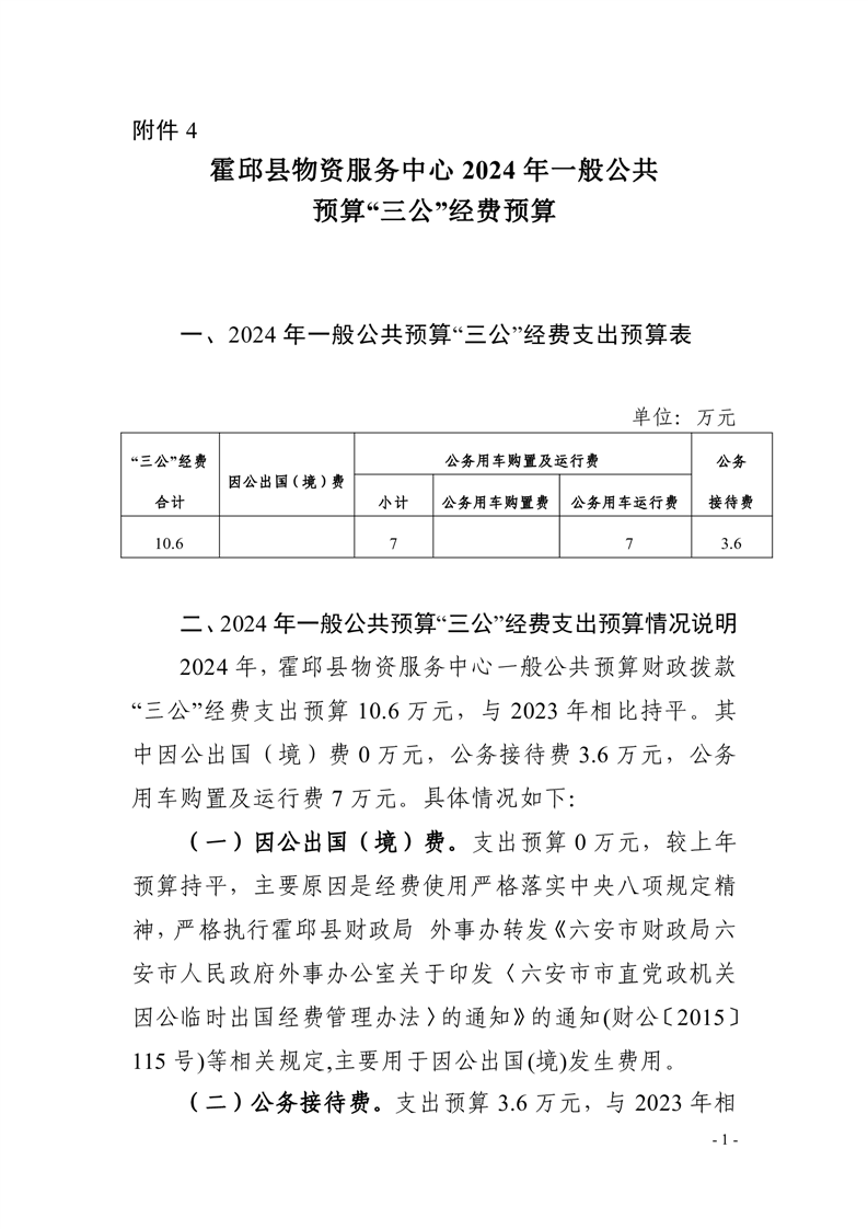 霍邱县物资服务中心2024年度一般公共预算安排“三公”经费情况