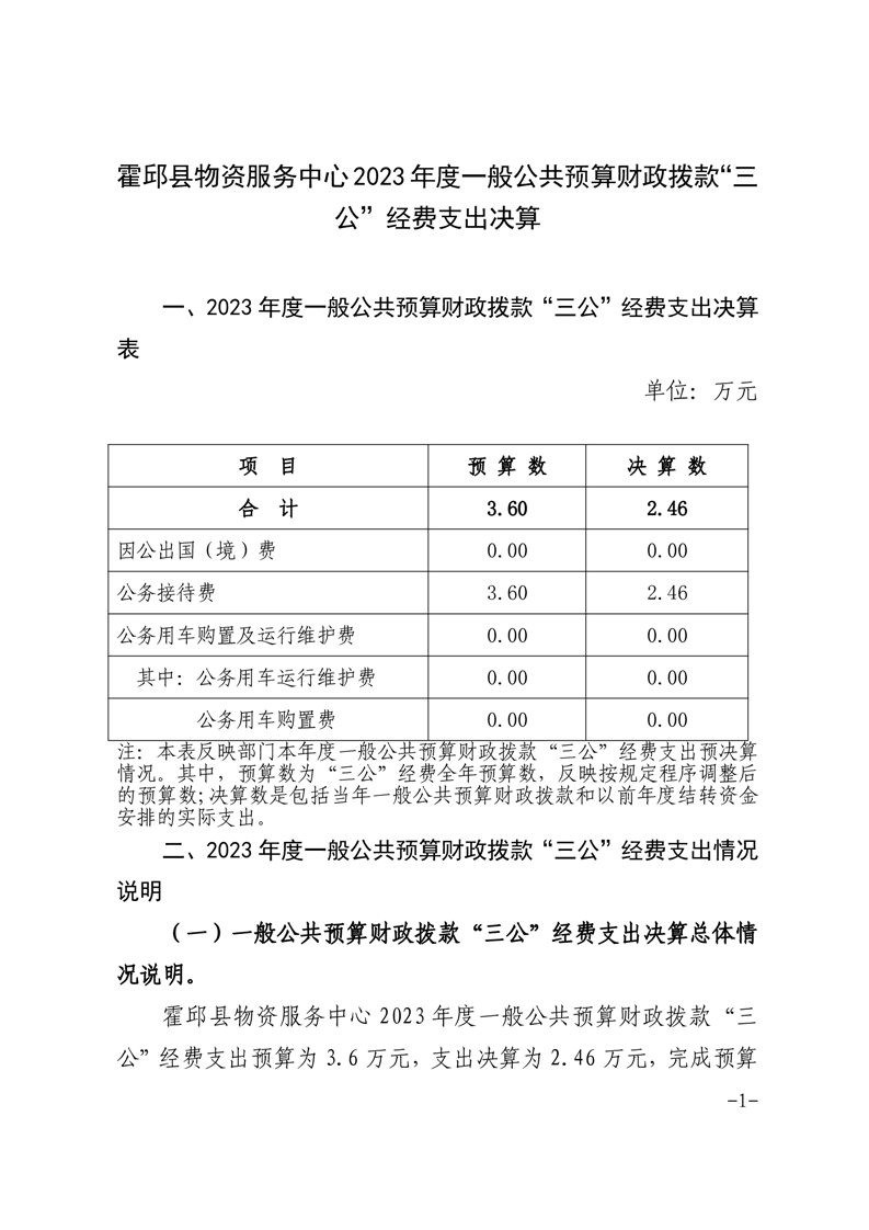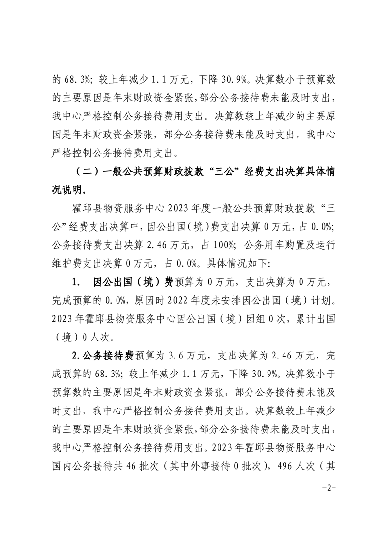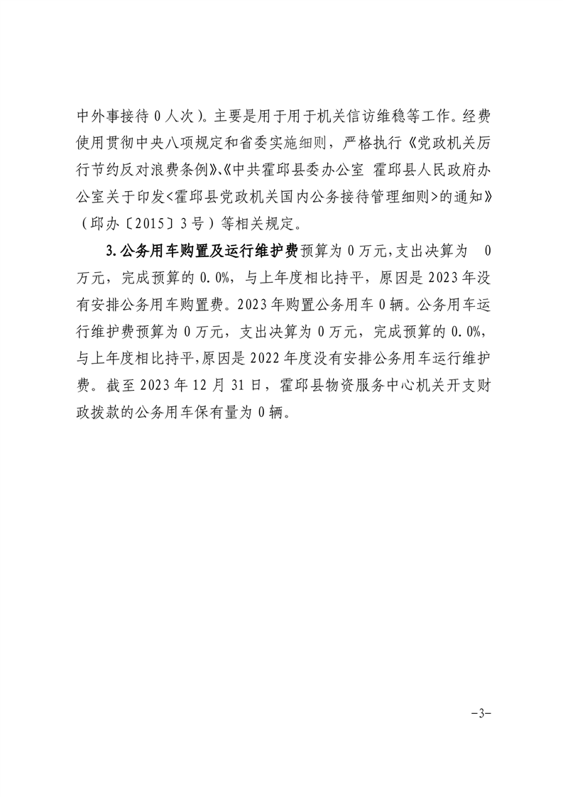 霍邱县物资服务中心2023年度一般公共预算财政拨款“三公”经费支出决算