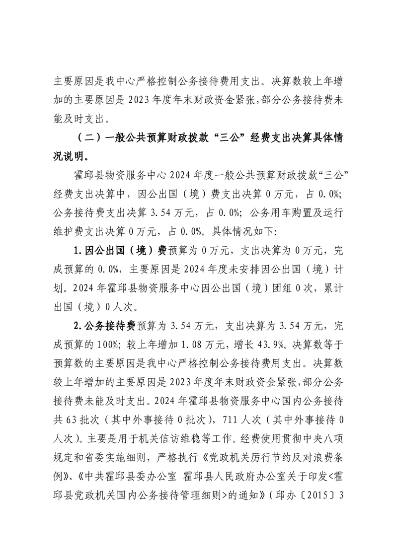 霍邱县物资服务中心2024年度一般公共预算财政拨款“三公”经费支出决算