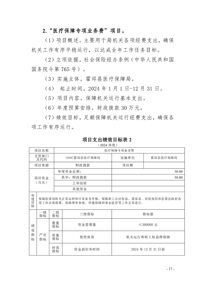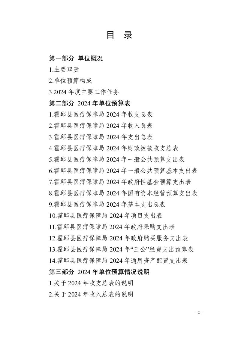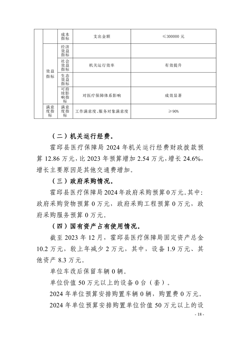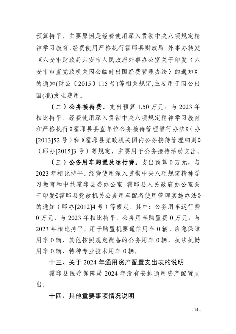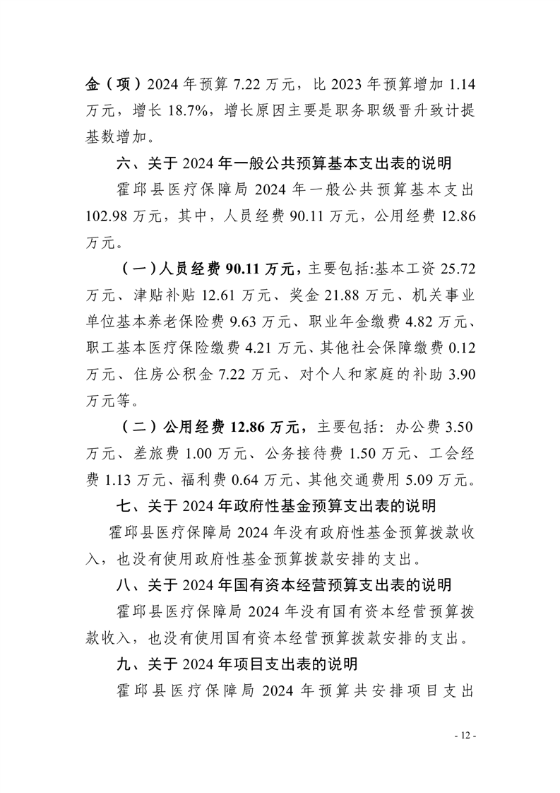 霍邱县医疗保障局2024年单位预算安排
