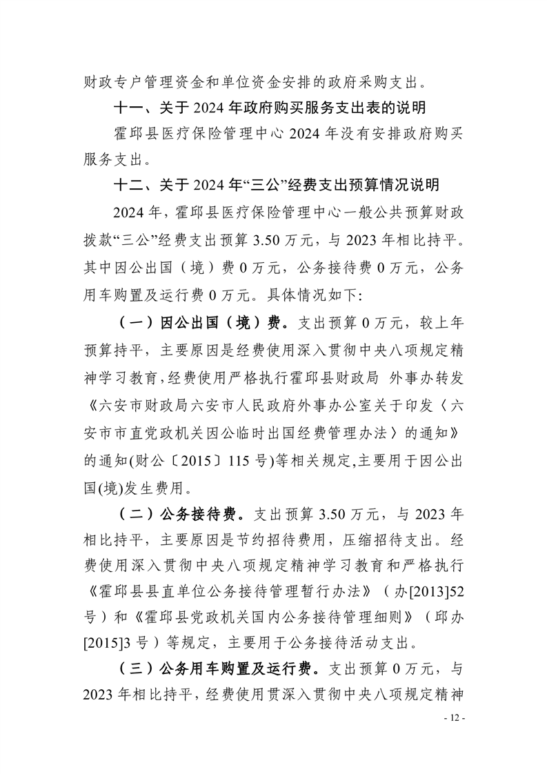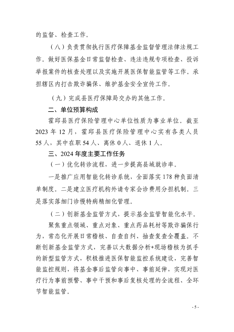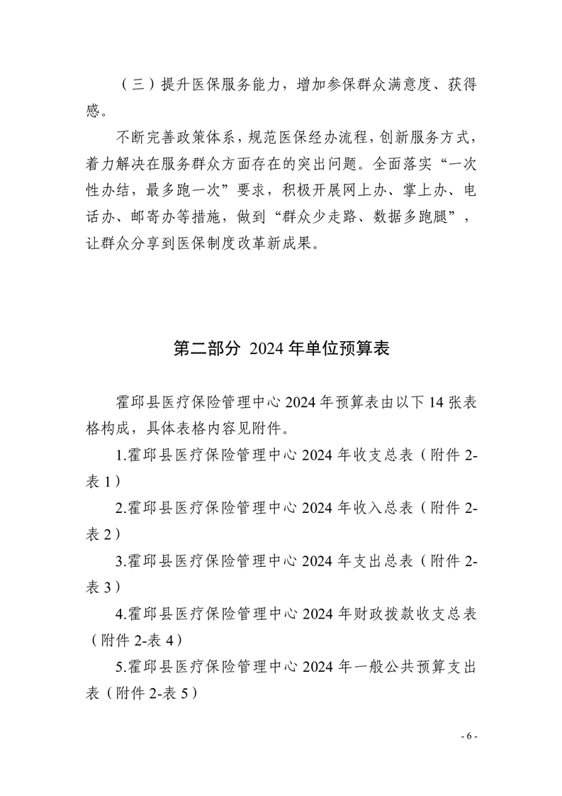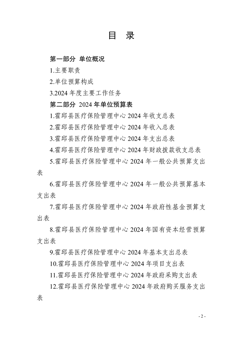 霍邱县医疗保险管理中心2024年单位预算安排