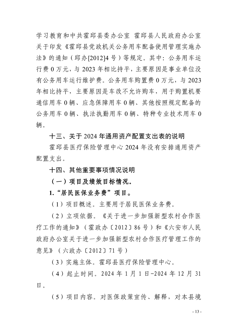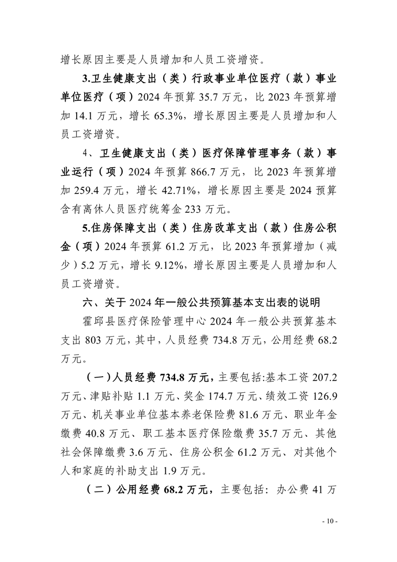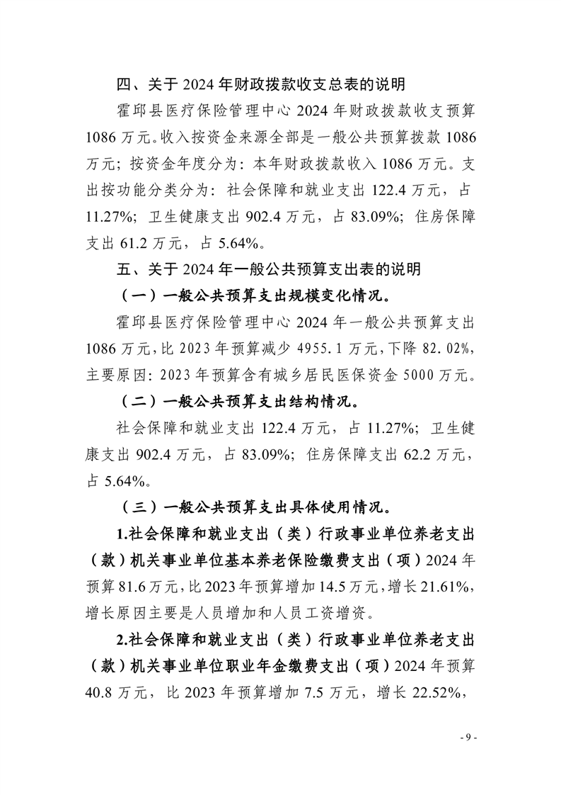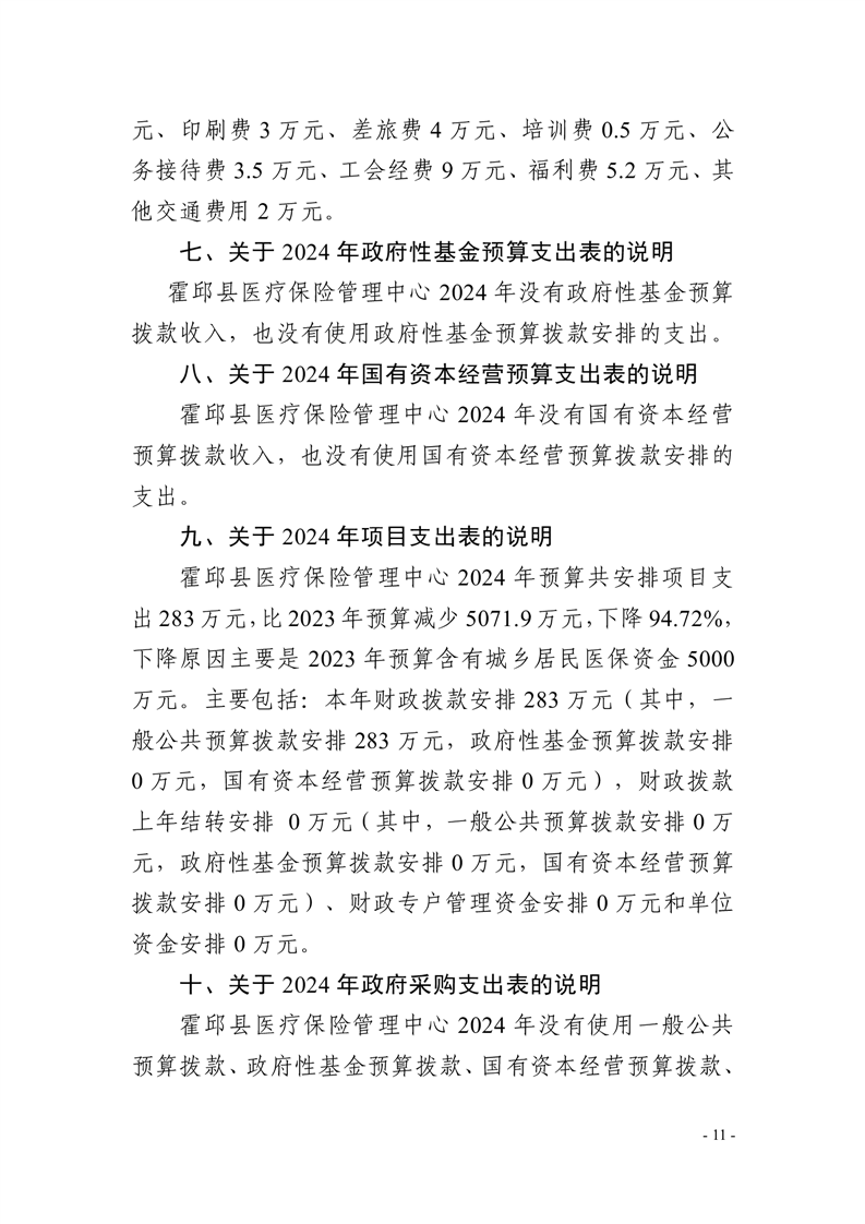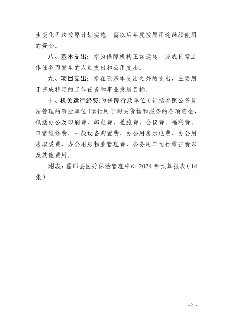 霍邱县医疗保险管理中心2024年单位预算安排