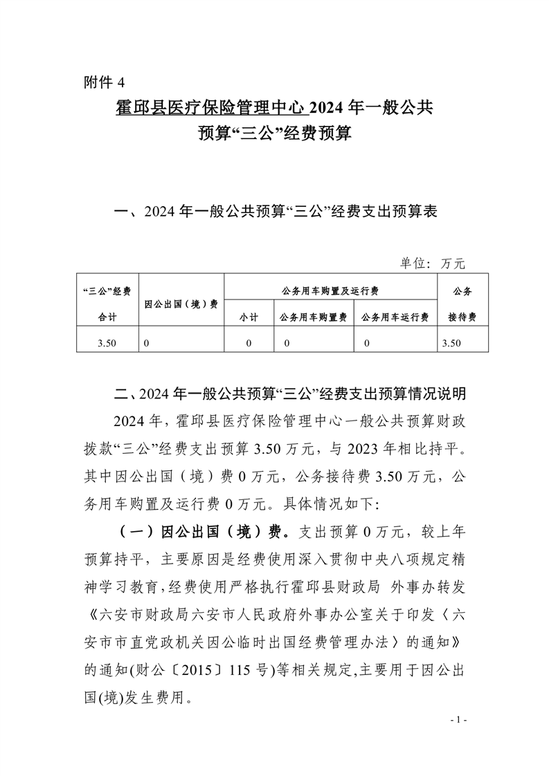 霍邱县医疗保险管理中心2024年一般公共预算安排“三公”经费情况