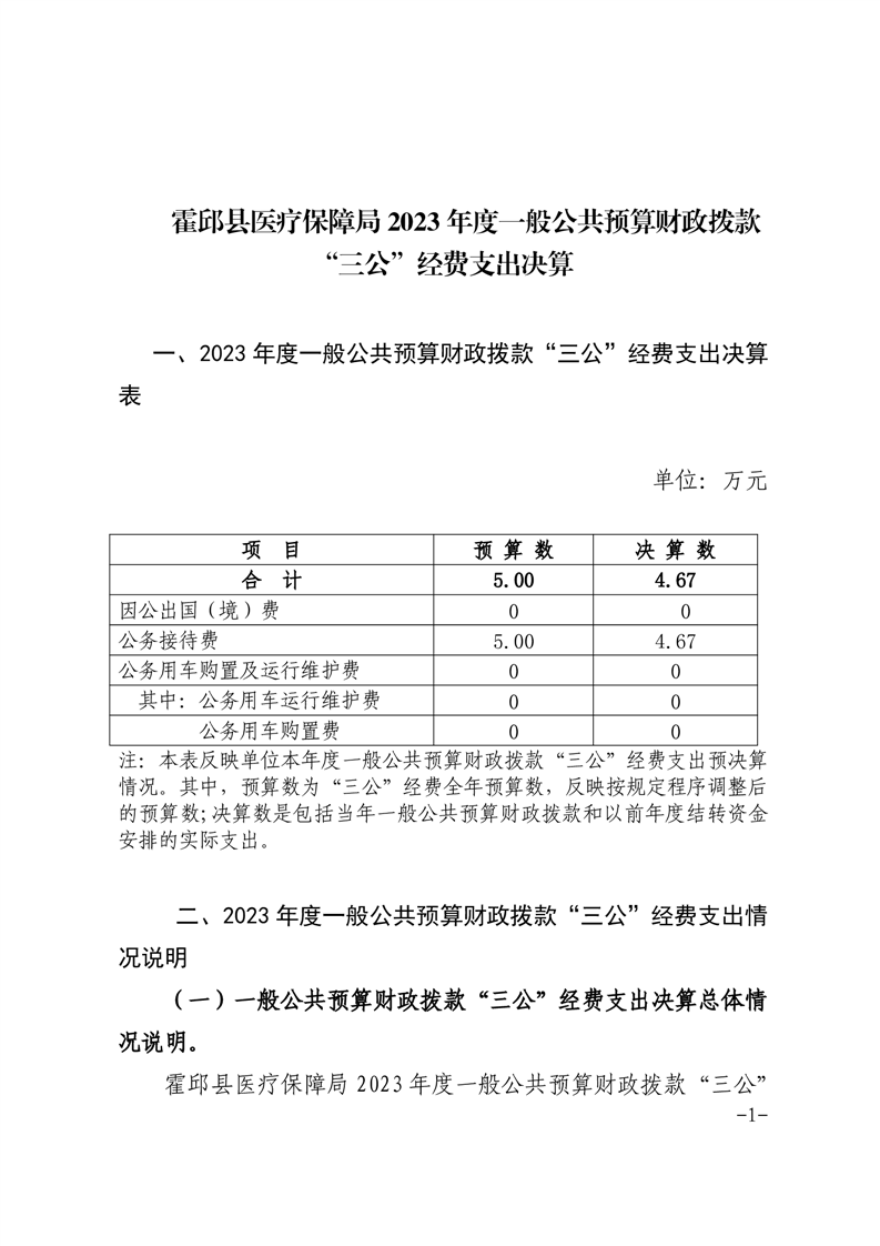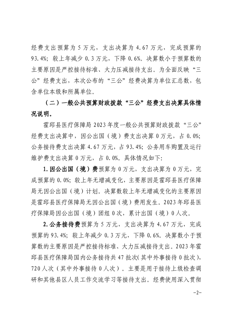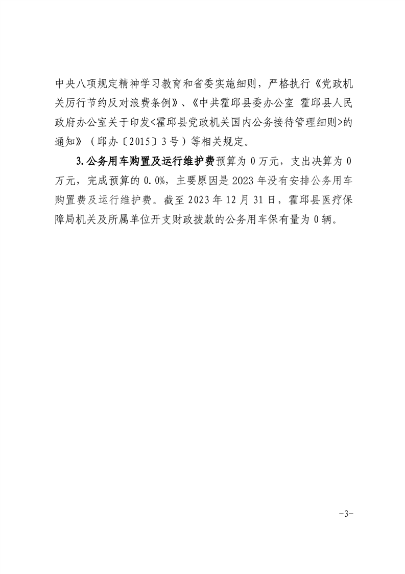 霍邱县医疗保障局部门2023年度一般公共预算财政拨款“三公”经费支出决算