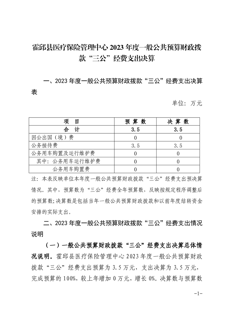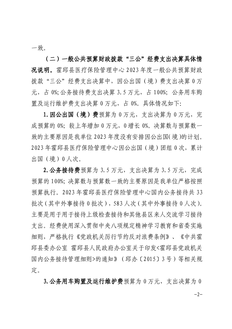 霍邱县医疗保险管理中心2023年度一般公共预算财政拨款“三公”经费支出决算