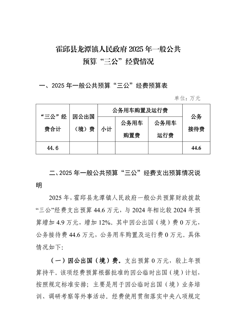 霍邱县龙潭镇人民政府2025年一般公共预算“三公”经费