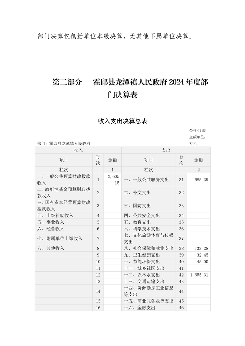 霍邱县龙潭镇人民政府 2024 年度部门决算