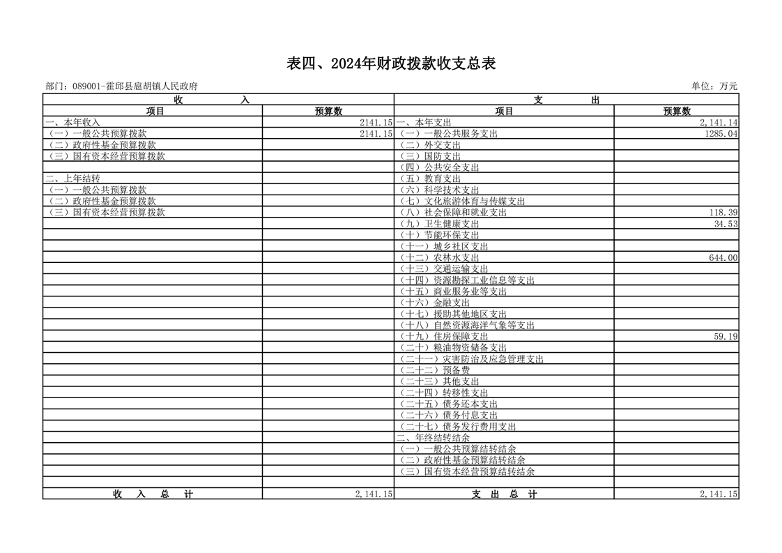 4.霍邱县扈胡镇人民政府2024年财政拨款收支总表