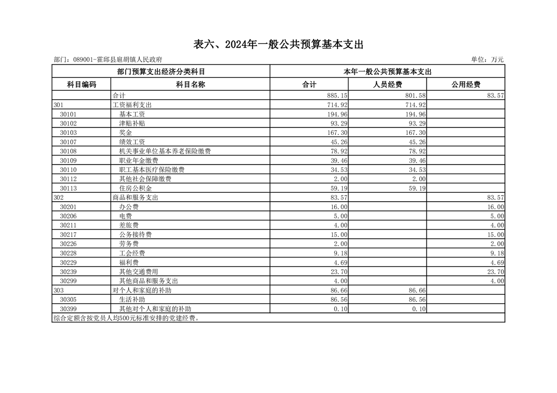 6.霍邱县扈胡镇人民政府2024年一般公共预算基本支出表(附件2-表6)