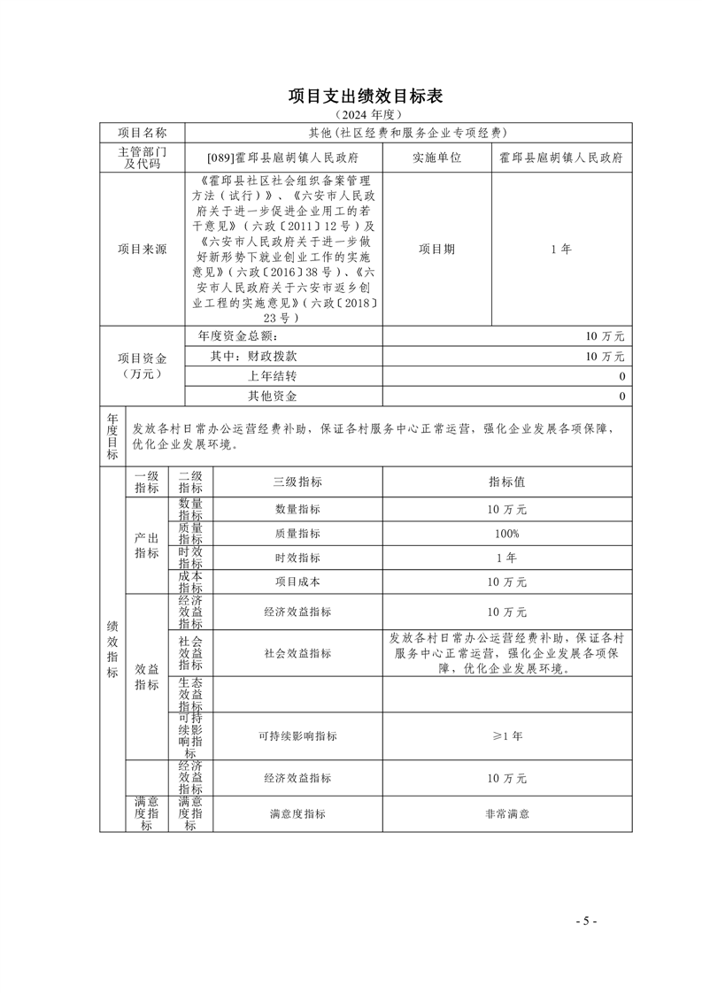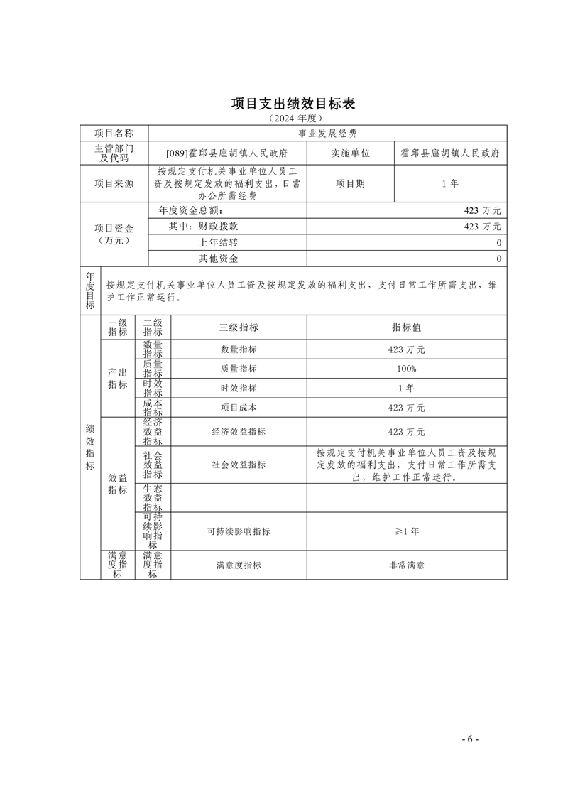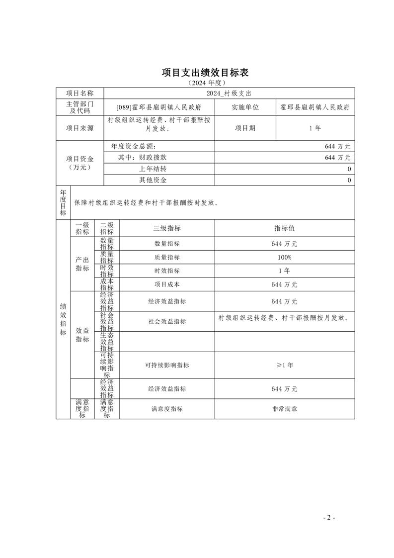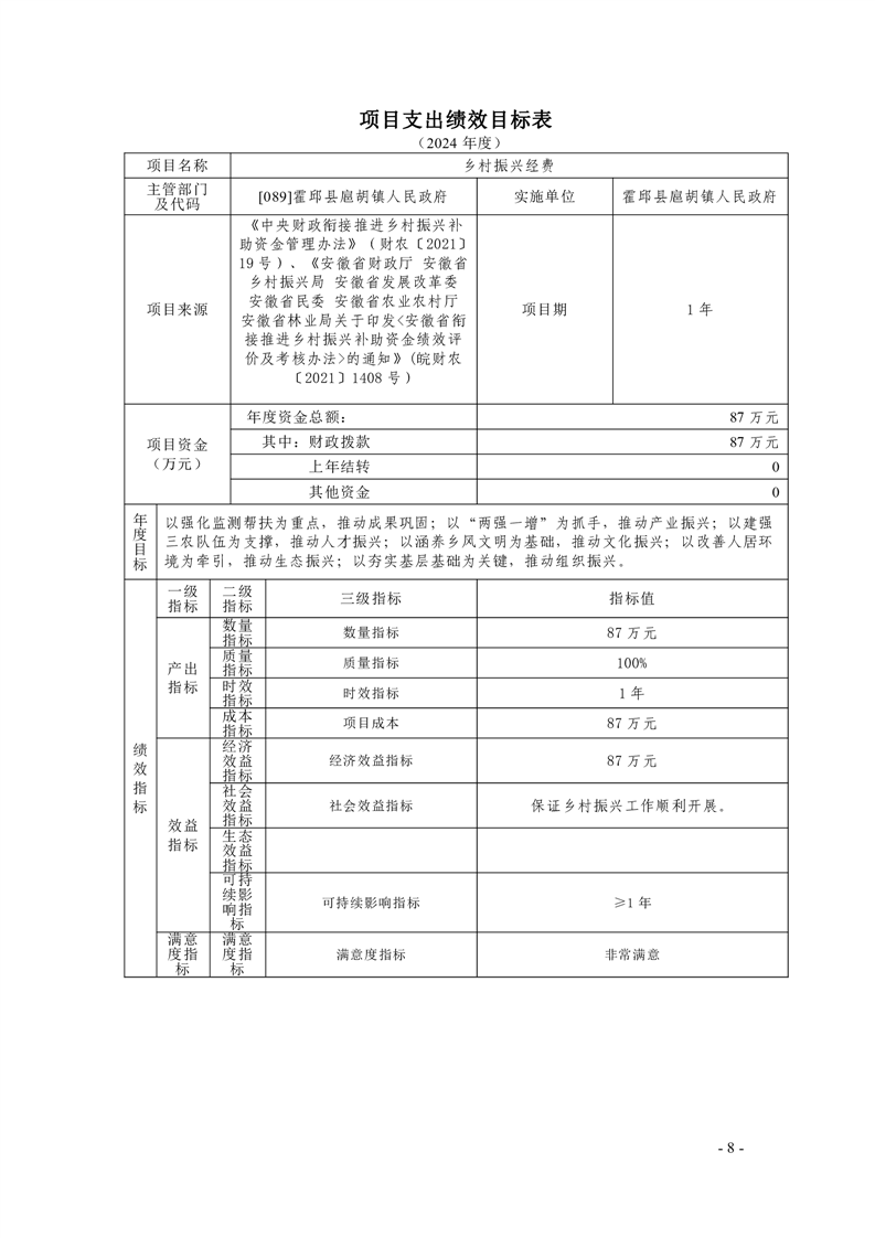 霍邱县扈胡镇人民政府2024年项目支出绩效目标