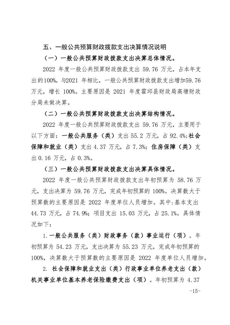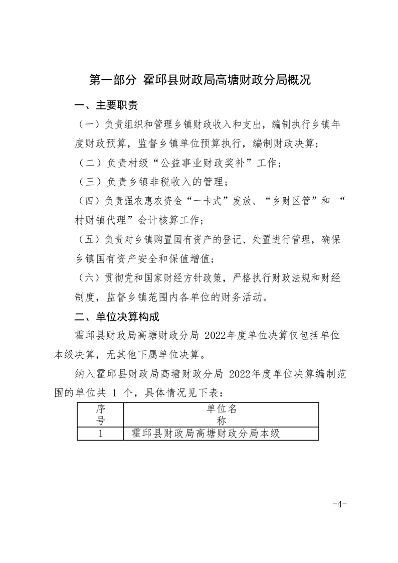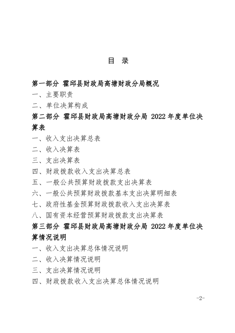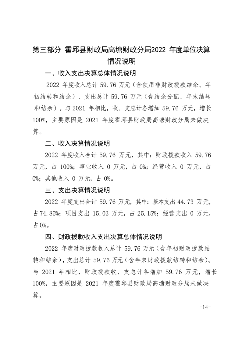 霍邱县高塘财政分局2022年单位决算公开